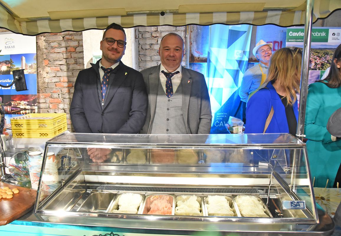 Bakarani su, pak, stigli sa svoj poznatim trisom – bakarskom vodicom, baškotom i Bakarskom tortom. Ali i zanimljivom – Bakarskom maneštrom, koja sadrži jačmik, leću, ali i mrkač i lignje.