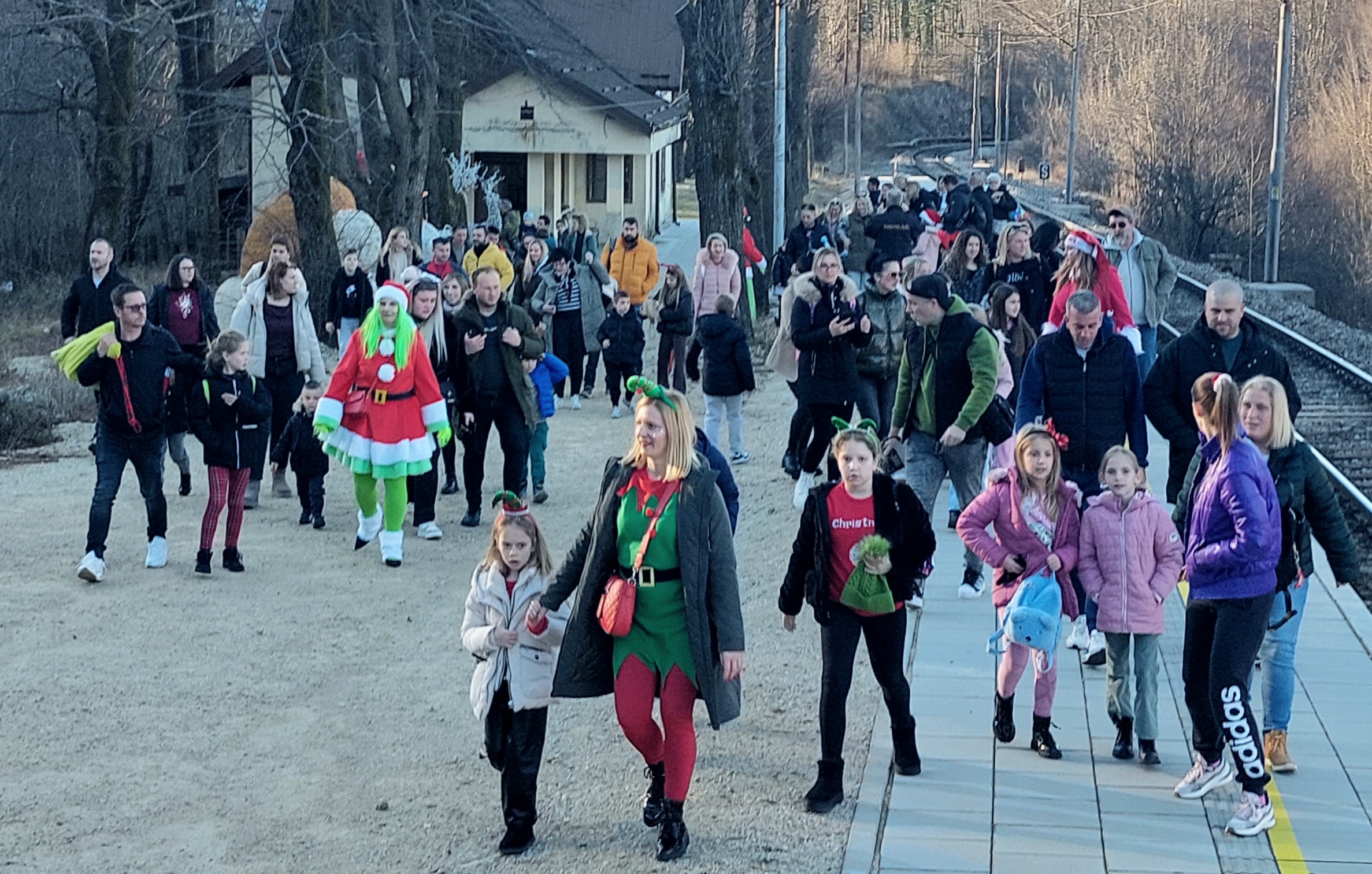 ZLOBIN Zažamorila je danas željeznička postaja na Škrljevu, a kako i neće kad je stotinjak djece u pratnji roditelja, nona, nonića ili starije braće i sestara krenulo u božićnu avanturu. A “avantura” je čekala na Zlobinu.
