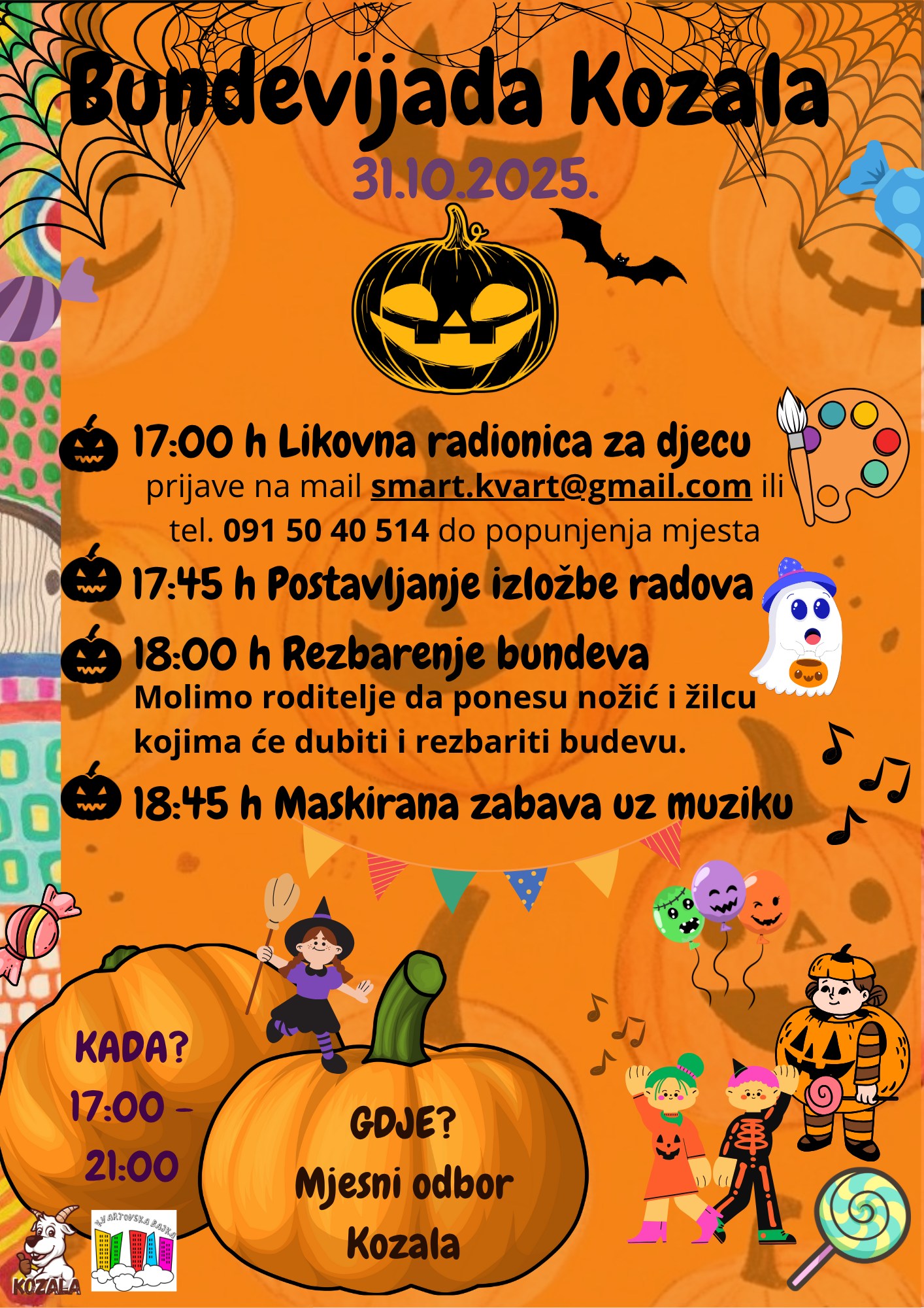 Vijeće Mjesnog odbora Kozala organizira u petak, 31. listopada Bundevijadu, koja će se održati od 17 do 21 sat u prostorijama Mjesnog odbora Kozala.