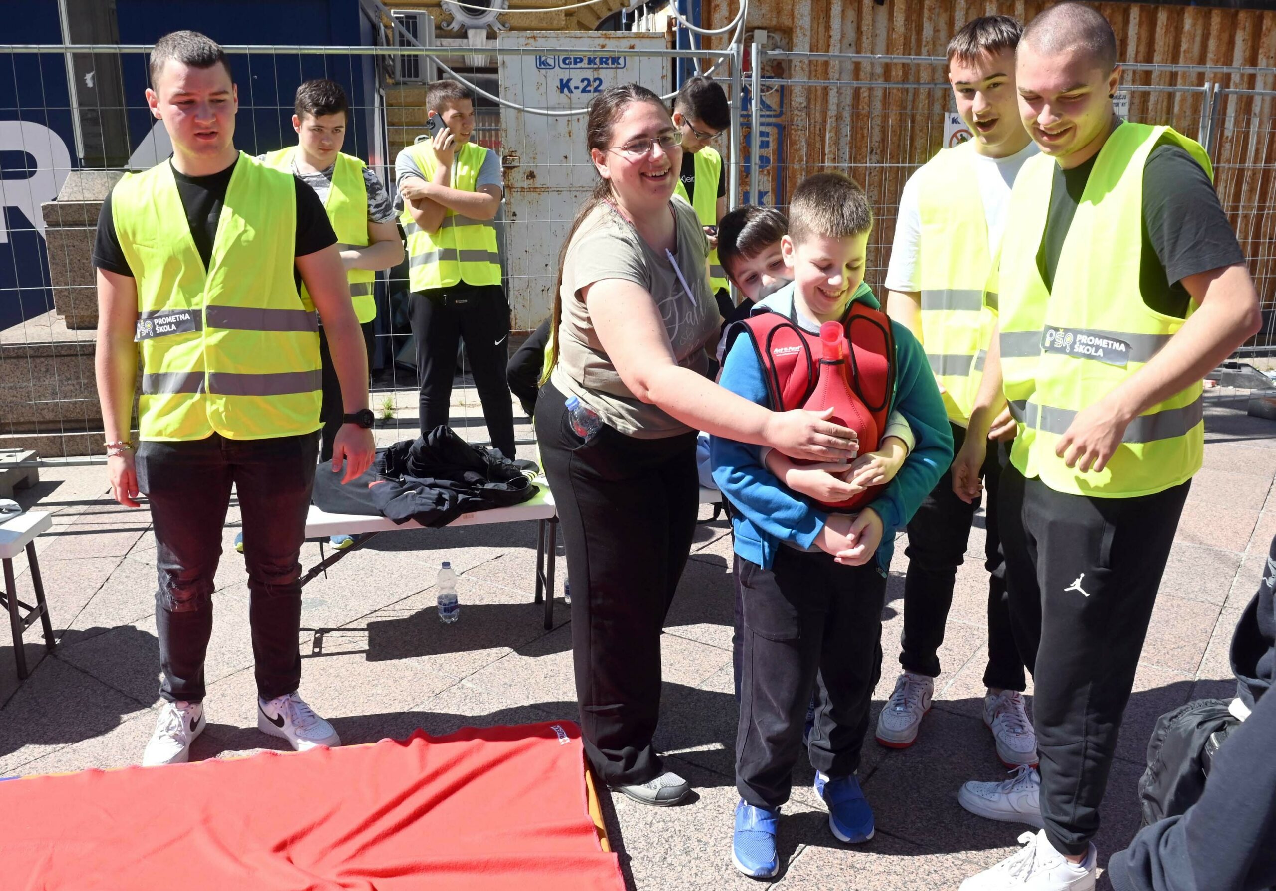 U provedbi aktivnosti priključili su se i učenici Prometne škole u Rijeci, u pratnji ravnateljice Mire Žepina, a za što su bili motivirani sudjelovanjem na Gradskom natjecanju mladih Hrvatskog Crvenog križa te su iskazali želju da građanima i ostalim učenicima pokažu znanja koja su stekli iz prve pomoći.