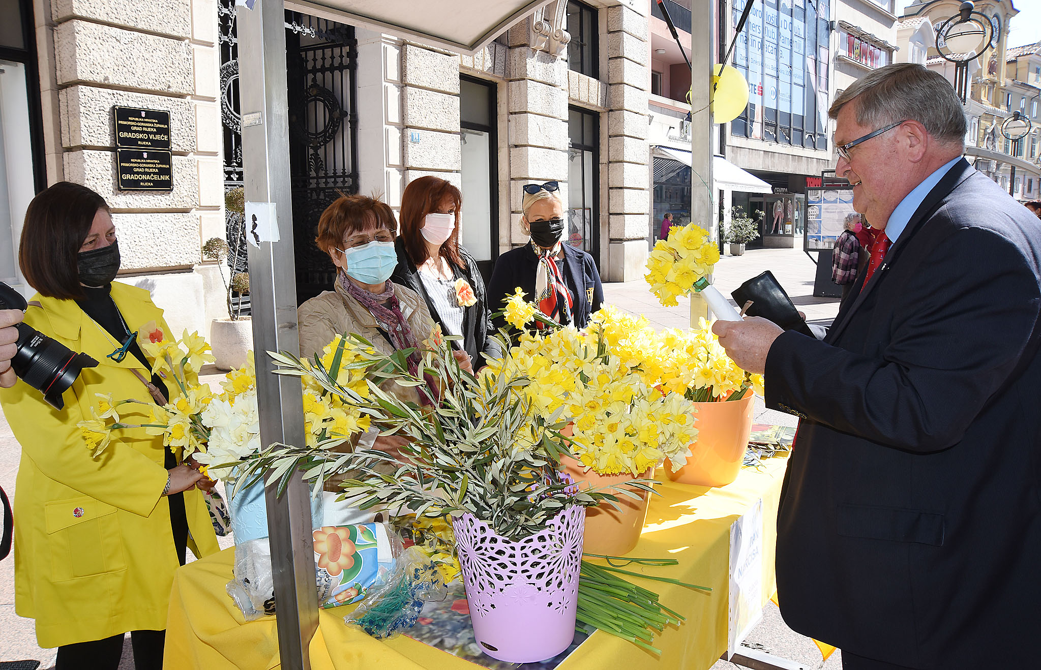 Obilježavanju Dana narcisa se kupnjom narcisa i radova članica Udruge Nada priključio i gradonačelnik Rijeke Vojko Obersnel.
