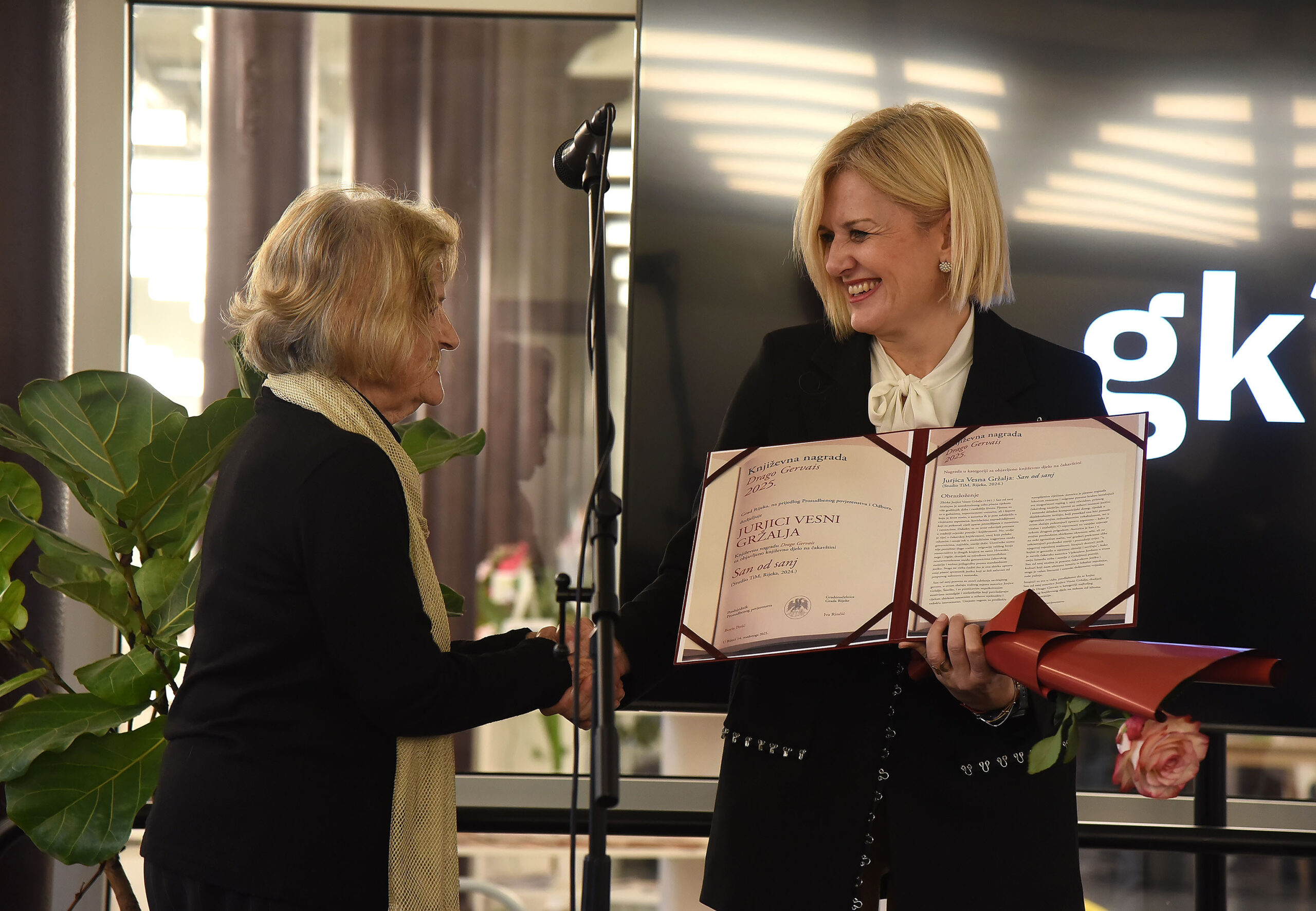 Književna nagrada Drago Gervais Grada Rijeke svečano je dodijeljena u petak u Rijeci dobitnicima Marku Pogačaru i Jurjici Vesni Gržalji.