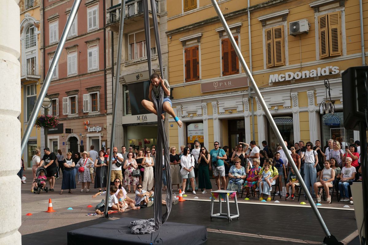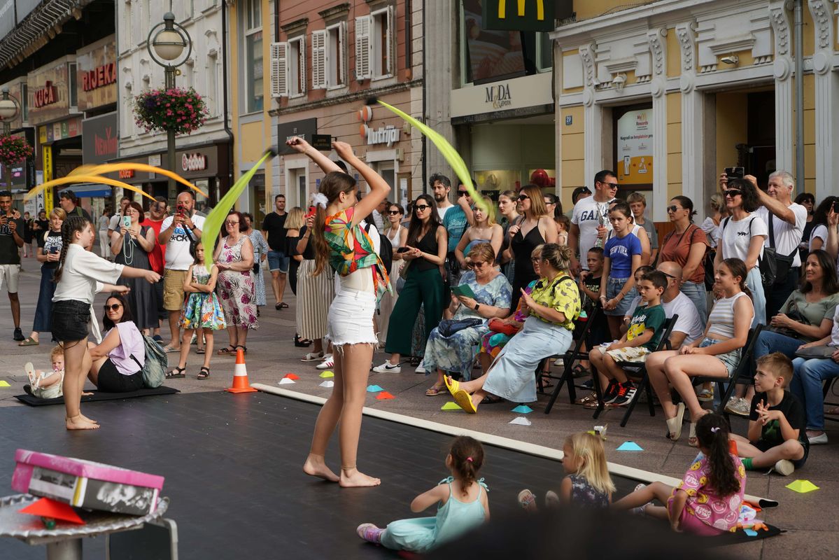 Polaznici radionica riječke udruge Prostor Plus danas su na Korzu upriličili atraktivnu završnu produkciju
