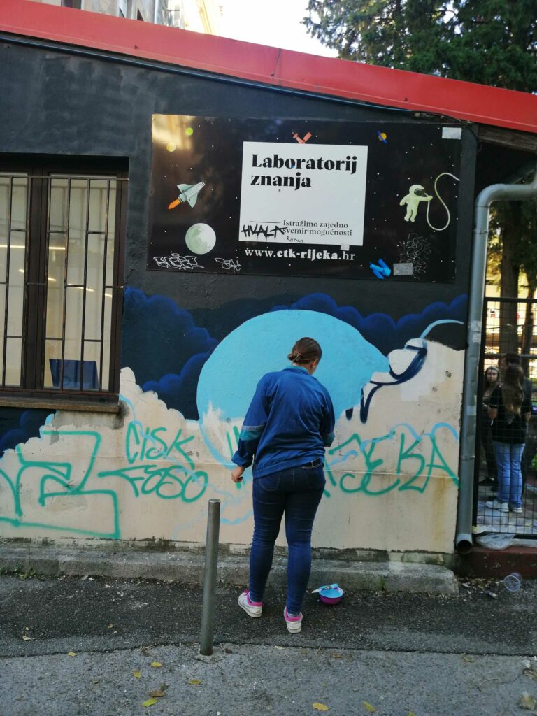 Kulturno umjetnička udruga Akt je u partnerstvu s CTK-om oslikala kabinet s polaznicima radionice oslikavanja naziva Nacrtajmo Svemir