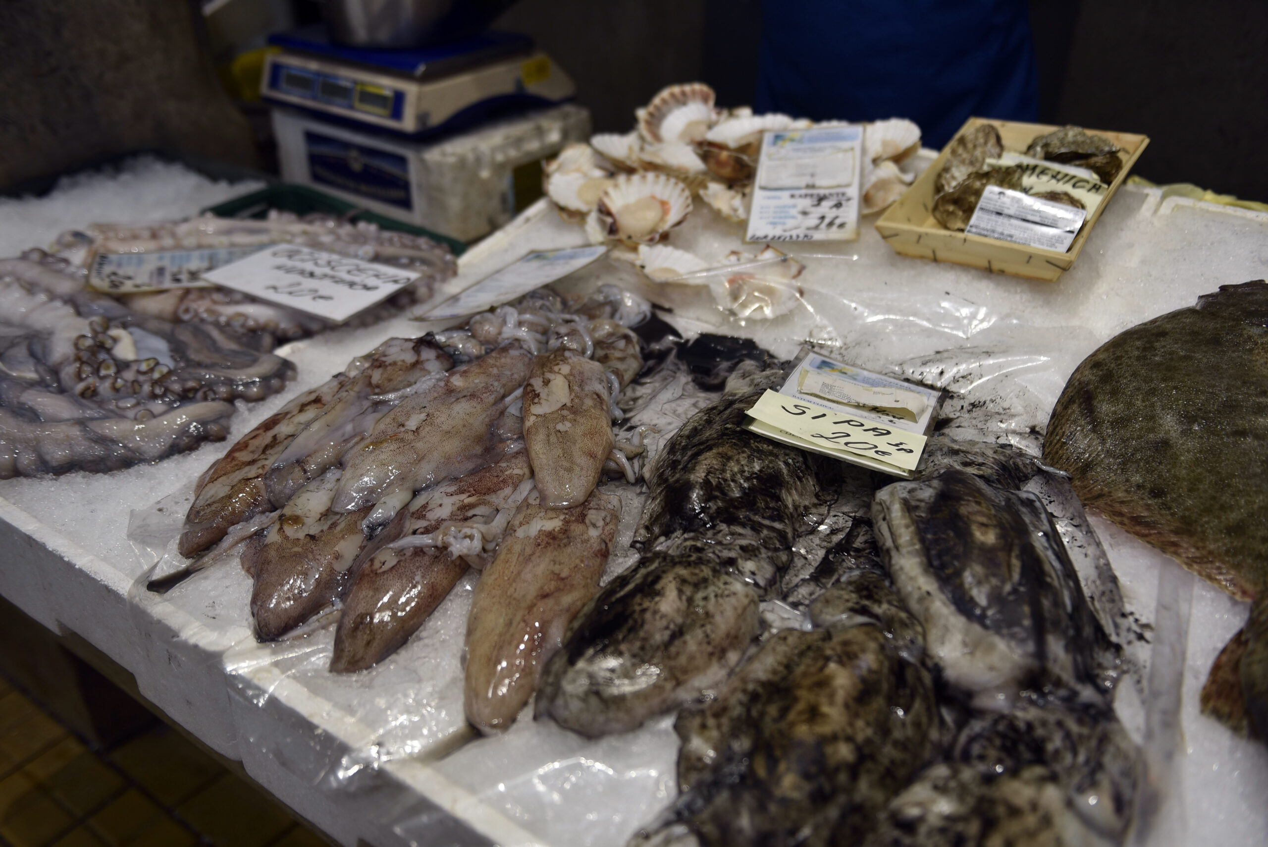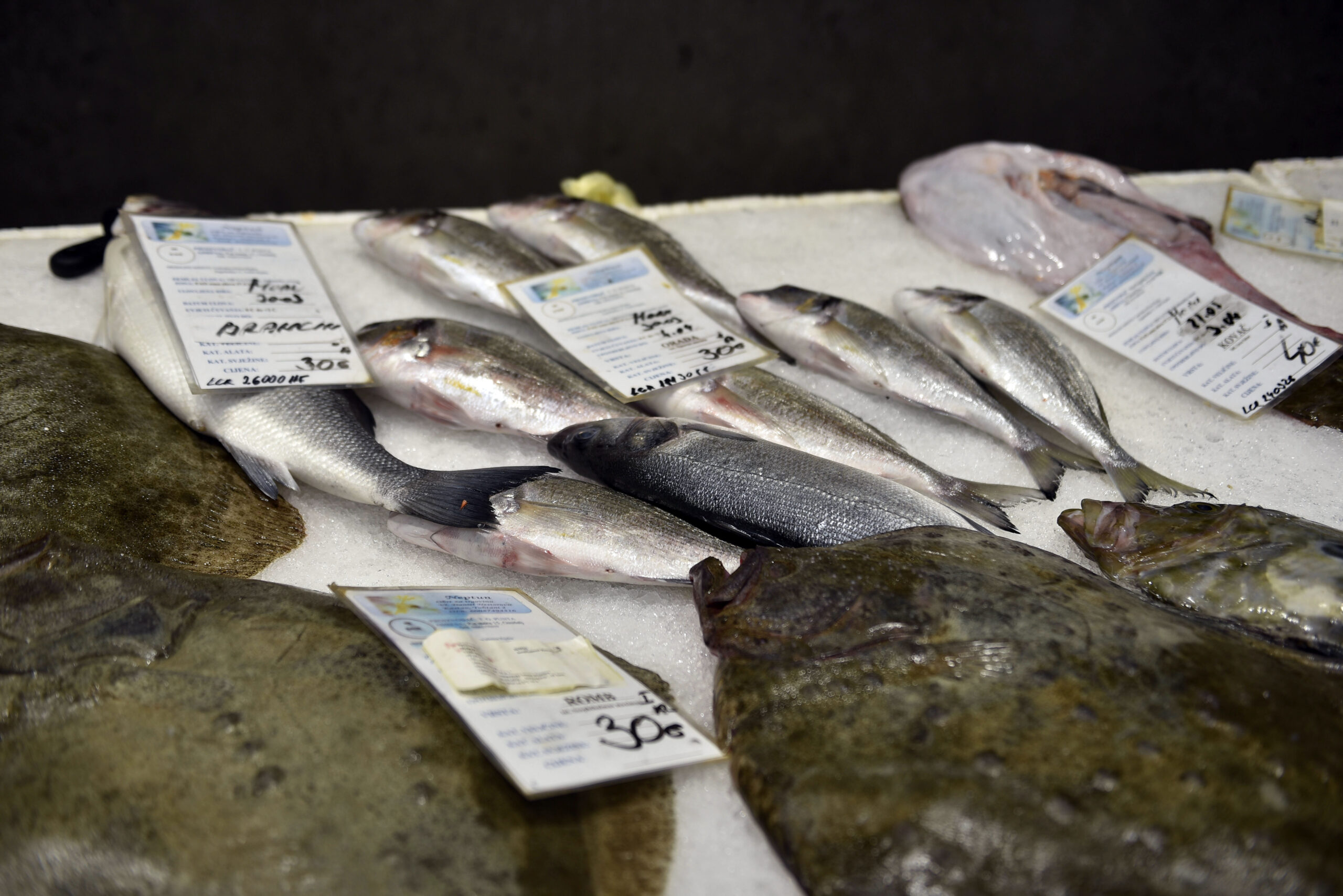 Dok se kalendarski primičemo uskrsnom vikendu, riječke tržnice, ona na Brajdi i glavna, u znaku su bure, što znači i bez kupaca. Jaka bura koja je bacala baje smeća po cesti, kao od šale, otjerala je kupce u zatvorene prostore, ali ni tamo nije bilo velike gužve. Na ribarnici je bilo pusto, nešto malo kupaca, nešto malo ribe. Dominira veliki romb po 30 eura za kilogram, a divlji brancin se može naći po cijeni od 20 eura, duplo više od onih iz uzgoja.