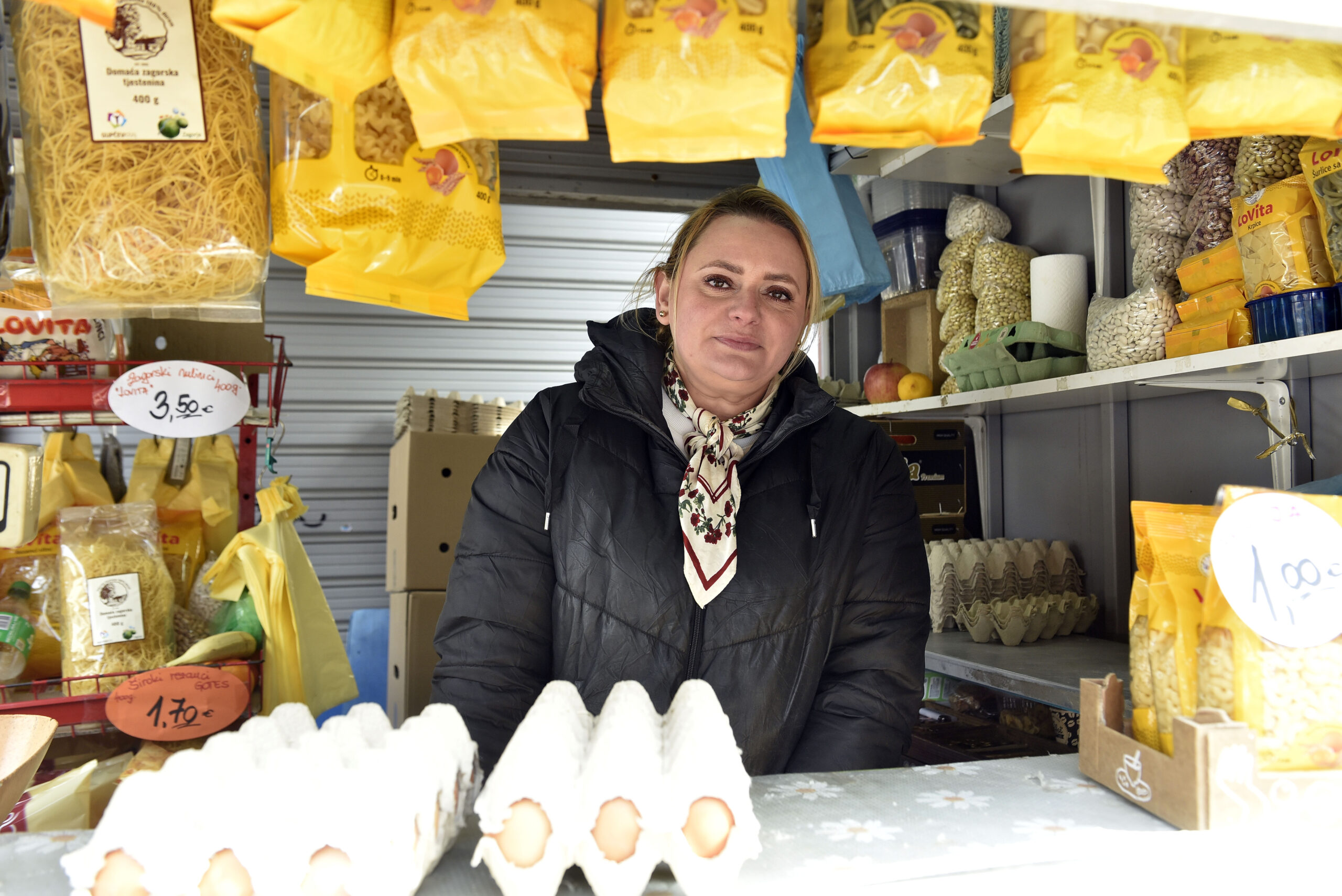 Druga prodavačica, dobro umotana i s kapom objašnjava kako se štedi na drugim stvarima, ali za Uskrs se ne pazi. Koliko smo uspjeli razgovarati s rijetkim kupcima, najviše se traže jaja i šunka, ali i maslinove grančice koje se prodaju od 2 do 5 eura.