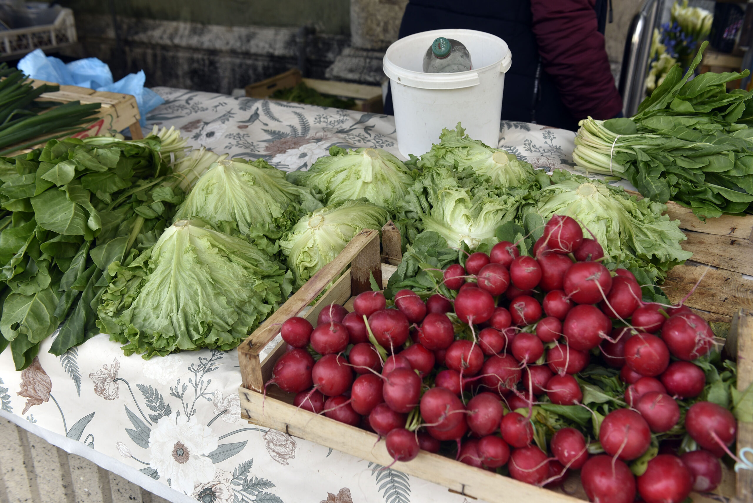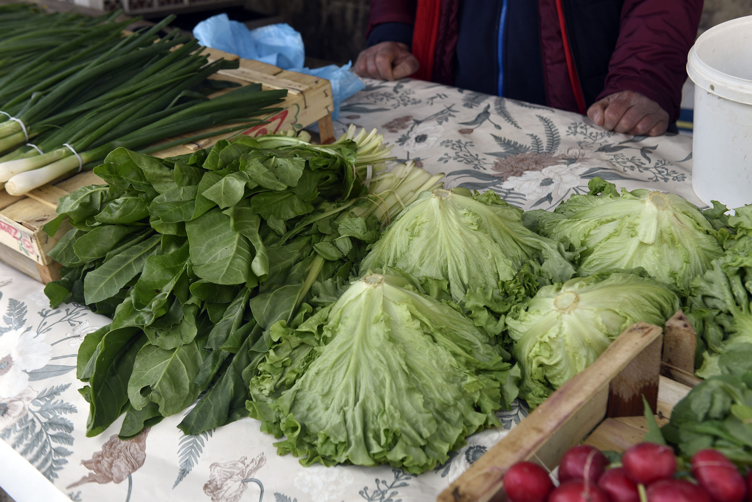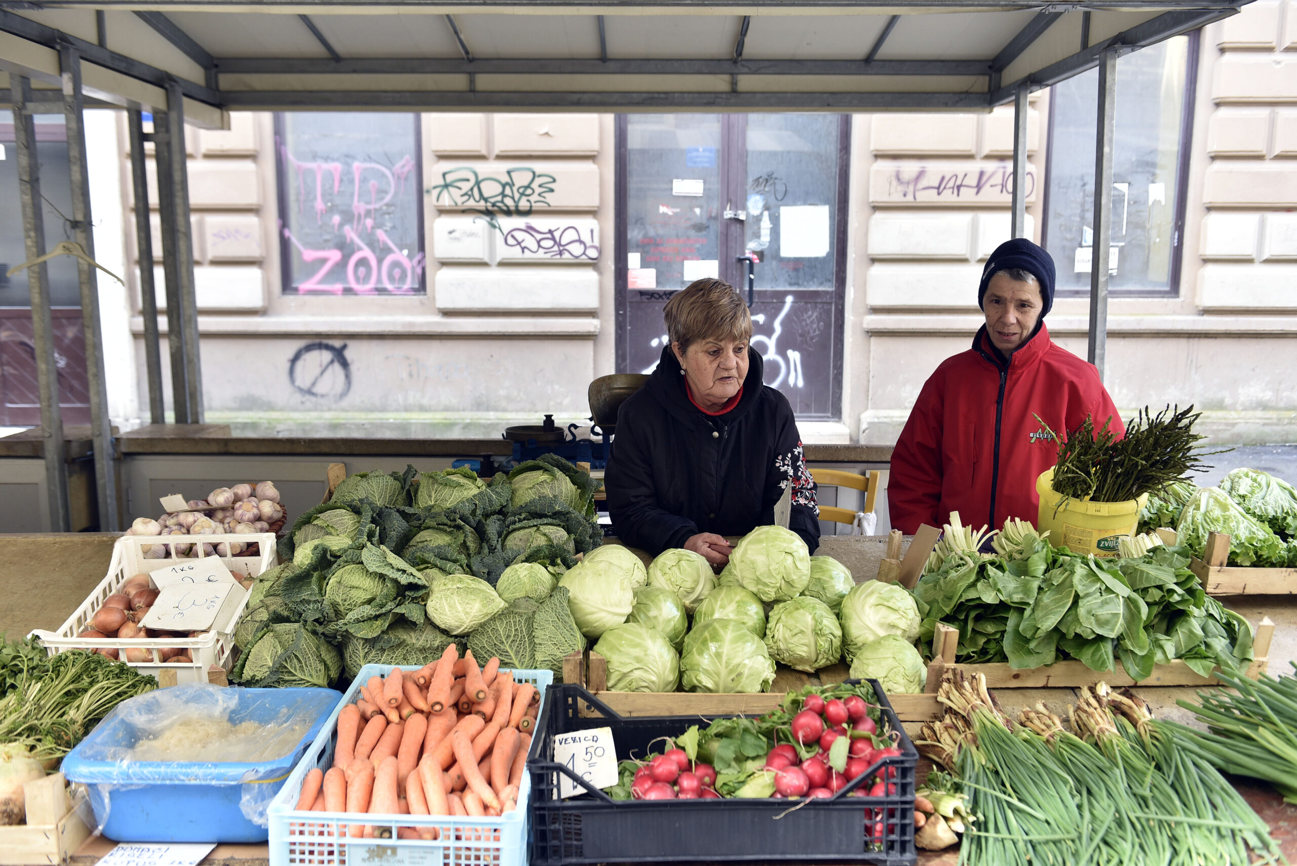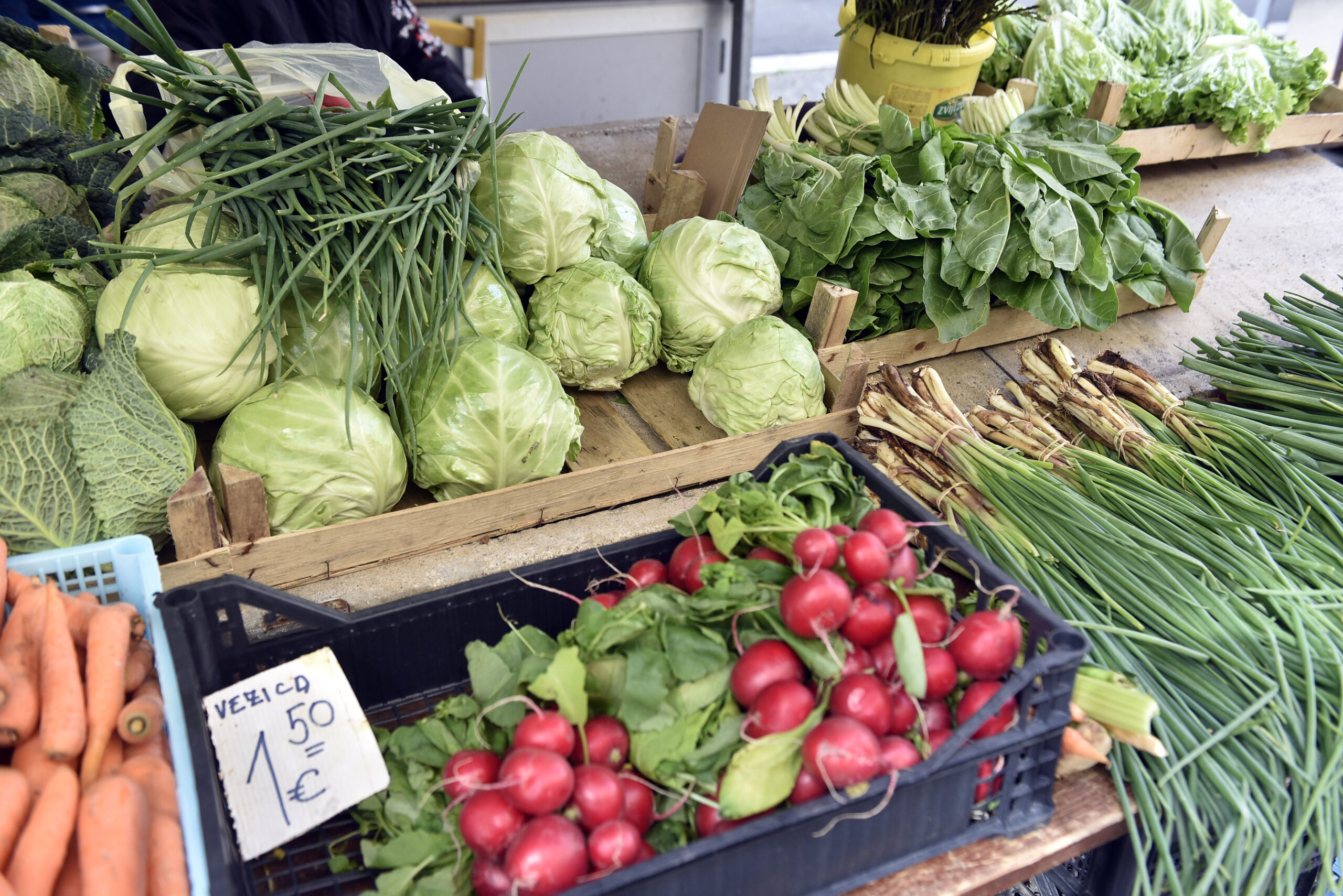 Na otvorenoj zelenoj tržnici ponuda je bogata i raskošna, ali nedostaje kupaca, dok su se prodavači »ubundali«. U ponudi je ono glavno – jarkocrvene rotkvice, mladi luk i domaća jaja iz podnog uzgoja. Rotkvice, taj nezaobilazan uskrsni prilog, prodaju se po cijeni od 1 do 1,50 eura za mac, dok se mladi luk nudi za 1 do 2 eura. Za one koji traže nešto specifičnije, tu je i ljutika čija se cijena kreće od 2 do 5 eura po macu. Posebno mjesto zauzima i jedan od vjesnika proljeća – šparoge. Ovisno o debljini stručka i lokaciji branja, ovaj se specijalitet cijeni od 2,50 do 4 eura.
