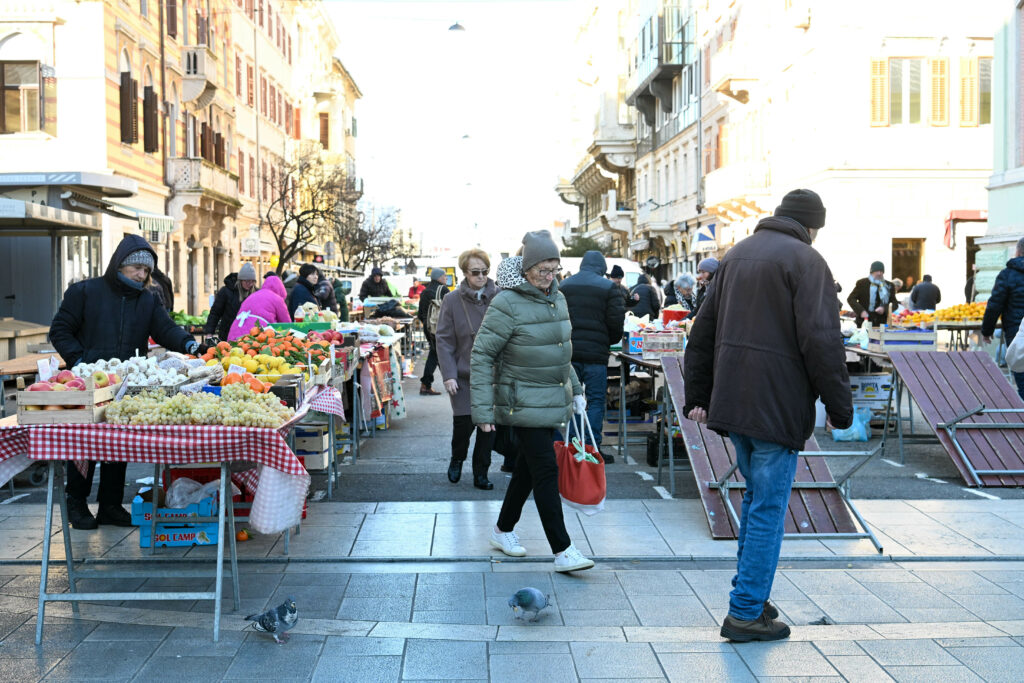 Na tržnici Zamet dio štandova bio je zatvoren, što zbog hladnog i vjetrovitog dana, a što zbog činjenice da se istrošilo uoči božićnih blagdana.