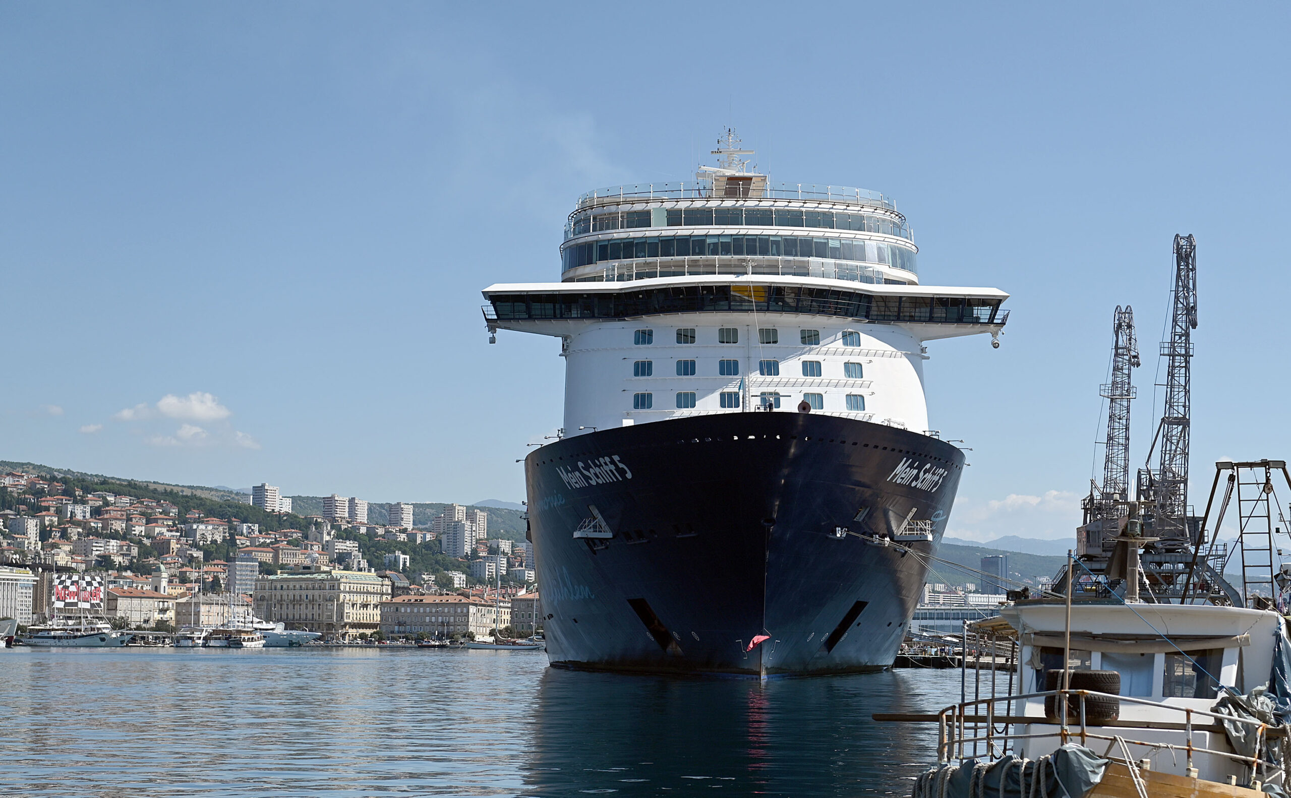 RIJEKA – Kruzer »Mein Schiff«, njemačkog operatera TUI Cruises, duljine 295,3 metra, širine 35,8 metara te bruto tonaže 98,785 BT, u subotu je stigao u Rijeku i to je prvi kruzer takvih dimenzija koji je privezan uz novi, treći ponton uz Molo longo, postavljen samo dan ranije, upravo kako bi veliki kruzeri mogli uplovljavati u luku, a ne više, kao sada, biti na sidrištu ispred luke.