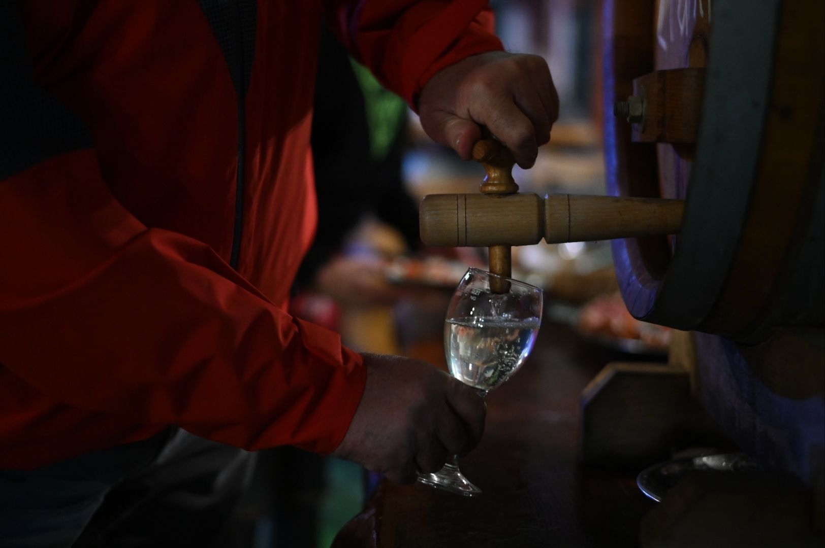 “Blagoslov” vina organiziran je kod Žarka Žeželića – Prdele u “Sidru”, a domaćin je na sebe preuzeo i svećeničke dužnosti, obukao se te blagoslovio vino.