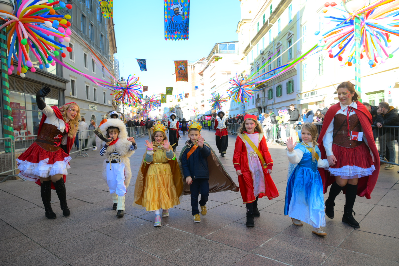 Sunčano subotnje vrijeme sjajna je kulisa današnje dječje karnevalske povorke Riječkog karnevala. U ovim trenucima preko šest i pol tisuća mališana svojim malim, snažim koracima kreće u maškaranu šetnjom najdražim gradom.