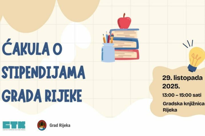 Grad Rijeka poziva sve srednjoškolce i studente i njihove roditelje na “Ćakulu o stipendijama”, koja će se održati u srijedu, 29. listopada od 130 do 15 sati u Gradskoj knjižnici Rijeka, Viktora Cara Emina 1.