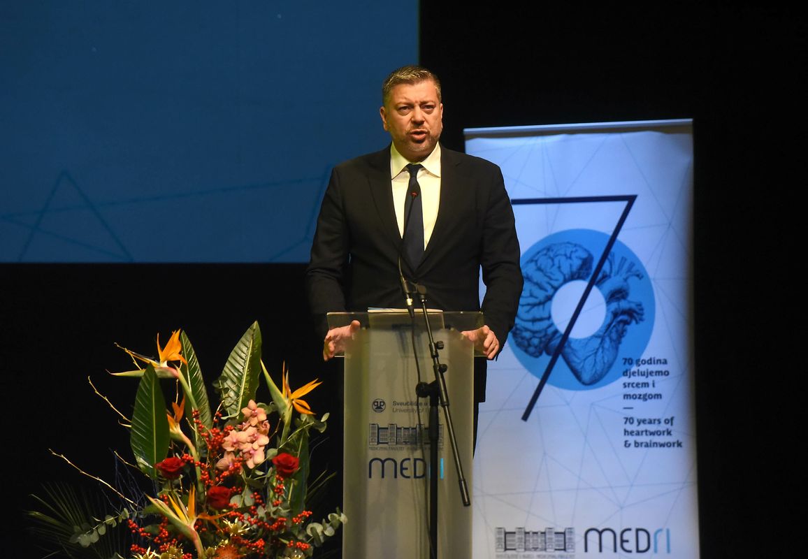 Podsjećajući da je prije 70 godina grupa vizionara predvođena Andrijom Štamparom imala hrabrosti postaviti temelje riječkog Medicinskog fakulteta, kazao je da se danas s ponosom može reći da je njihova vizija ostvarena, a možda u nekim segmentima i nadmašena.