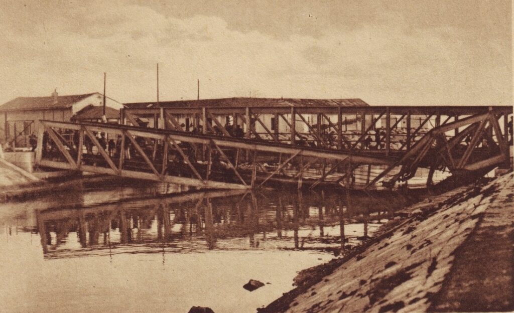 Željeznički mostovi nakon Krvavog Božića, početkom 1920. – u prvom planu minirani most Rječina II, u drugom most Rječina III / Fotoarhiva Miljenka Smokvine Caption: