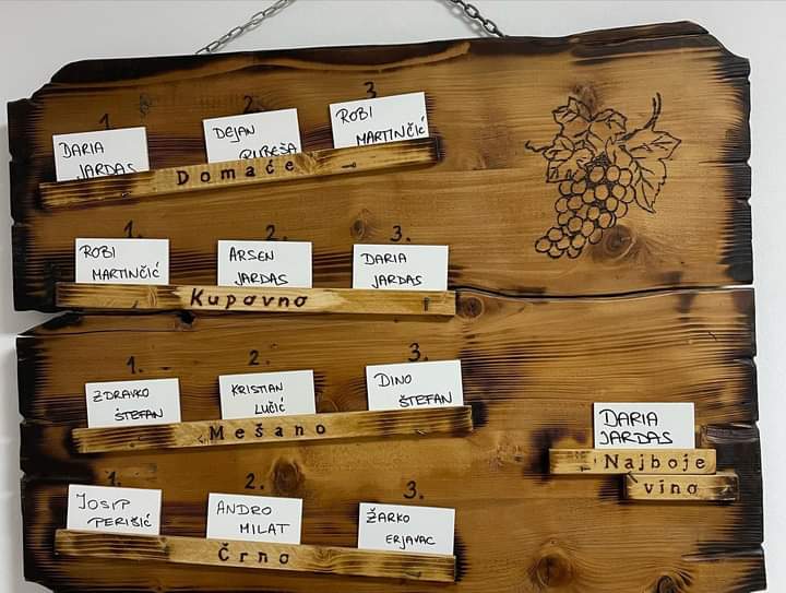 Kad je riječ o kupovnom grožđu, najbolji je bio Martinčić, dok su se na drugu i treću poziciju plasirali Arsen Jardas i još jednom – Daria Jardas. Kod “mešanog” najbolji je Zdravko Štefan, a nakon njega idu Kristian Lučić i Dino Štefan. Na koncu, “črno vino” i zlato za Josipa Perišića, druga pozicija za Kristiana Lučića te bronca za neumornog Žarka Erjavca. I ove je godine glavni enologi bio Tomislav
