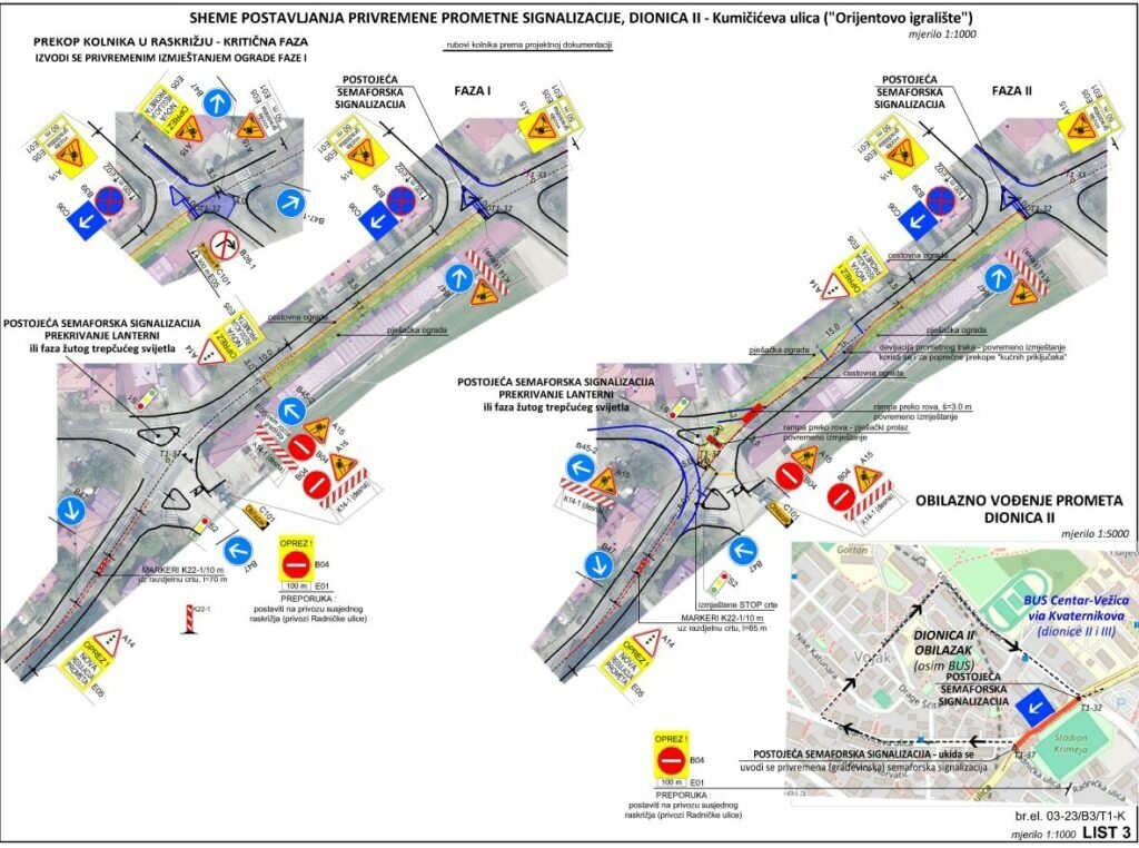 Nadalje, dodaju, na semaforiziranom raskrižju ulica Kumičićeva/Krautzekova/T. Strižića/M. Kontuša zadržava se postojeći režim prometa i ciklusi rada semafora.