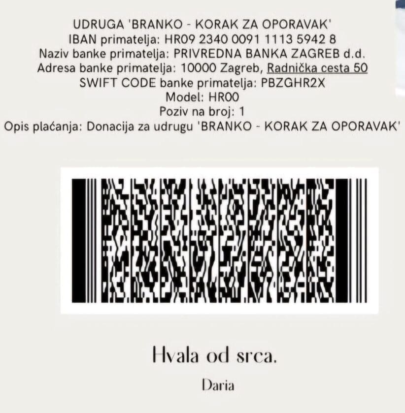Humanitarnu akciju vodi Udruga Branko – Korak za oporavak, a donacije se mogu uplatiti na: