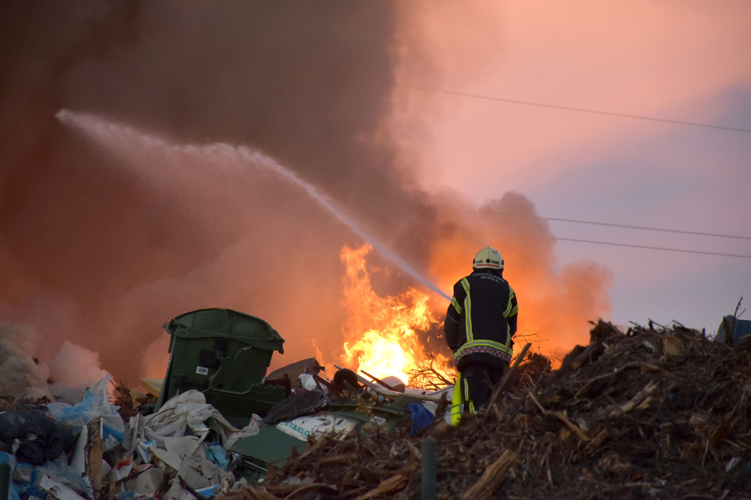 RIJEKA Danas nešto iza 17 sati izbio je veliki požar na području Reciklažnog dvorište Pehlin, u vlasništvu gradskog komunalnog društva Čistoća. Požar se rasplamsao u središnjem dijelu velike nakupine otpada, visine i do pet – šest metara, tako da je vatrogascima koji su vrlo brzo došli na mjesto događaja, bilo otežano gašenje. Uz ekipe vatrogasaca Javne vatrogasne postrojbe Grada Rijeke, u pomoć cijelo vrijeme dolazila su i brojna dobrovoljna vatrogasna društva svojim vozilima kao i s cisternama s vodom.