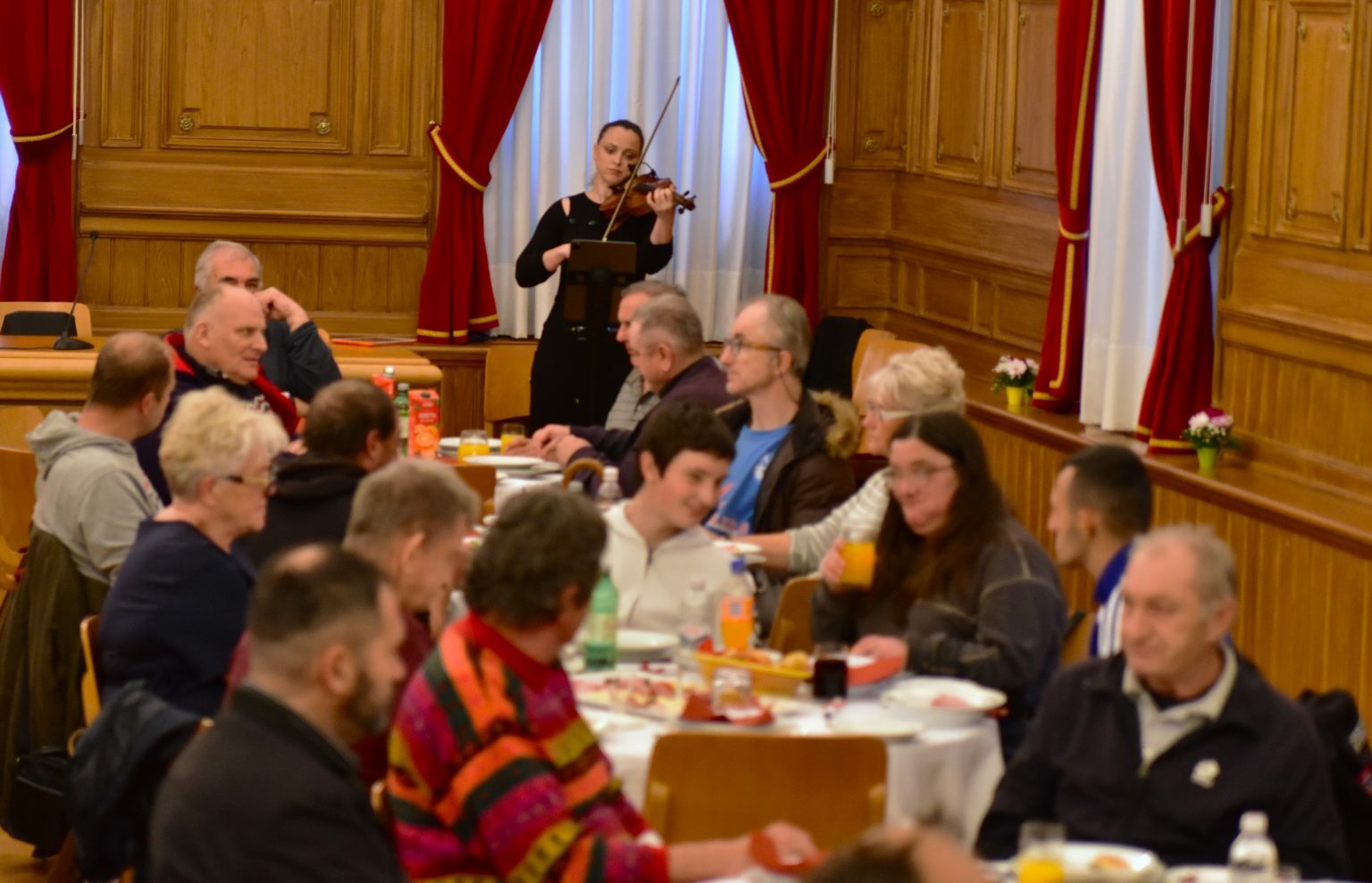 Korisnici o kojima svakodnevno brinu Udruga Depaul, Socijalna samoposluga, Udruga Ruže sv. Franje i nadbiskupijski Caritas, počašćeni pozivom, rado su se odazvali i zauzeli svoja mjesta za stolovima, a tu ih je dočekalo i nadbiskupovo pismo dobrodošlice.