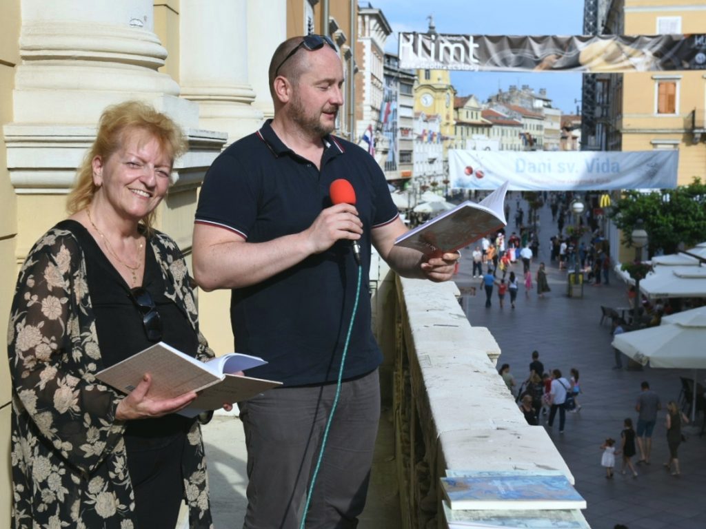 Poezija s balkona FilodrammaticeRiječko će ljeto zasigurno sadržajnijim učiniti »Poezija s balkona«, projekt što ga organizira riječki ogranak Društva hrvatskih književnika. »Prvo pa poezija«, zbilo se jučer kad su se oko 18 sati, s prvog kata zgrade Filodrammatica na Korzu, riječkom šetnicom prosuli stihovi Vjekoslave Jurdana, Vlaste Sušanj Kapićeve, Vlaste Juretić i Davora Grgurića. Riječani su zastali u hodu, a pjesnici nastavili u stihu. Uistinu, super zamisao koja bi, ako je suditi prema riječima Davora Grgurića, predsjednika ogranka Društva hrvatskih književnika u Rijeci trebala prerasti u tradicionalno pjesničko druženje i javno predstavljanje članova Društva. ![]() Davor Grguric i Vlasta Juretić recitrali svoje pjesme sa balkona Filodramatice /Foto Marko Gracin – Zamisao ovog zanimljivog događaja je da poklonici poezije ali i slučajni prolaznici koji se tada zateknu na Korzu »upiju« usputno neke od stihova naših istaknutih književnica i književnika koji svojim stvaralaštvom pridonose kulturi grada Rijeke, naše Županije i hrvatske književnosti općenito, kazao je Grgurić. (Sl. M.) |