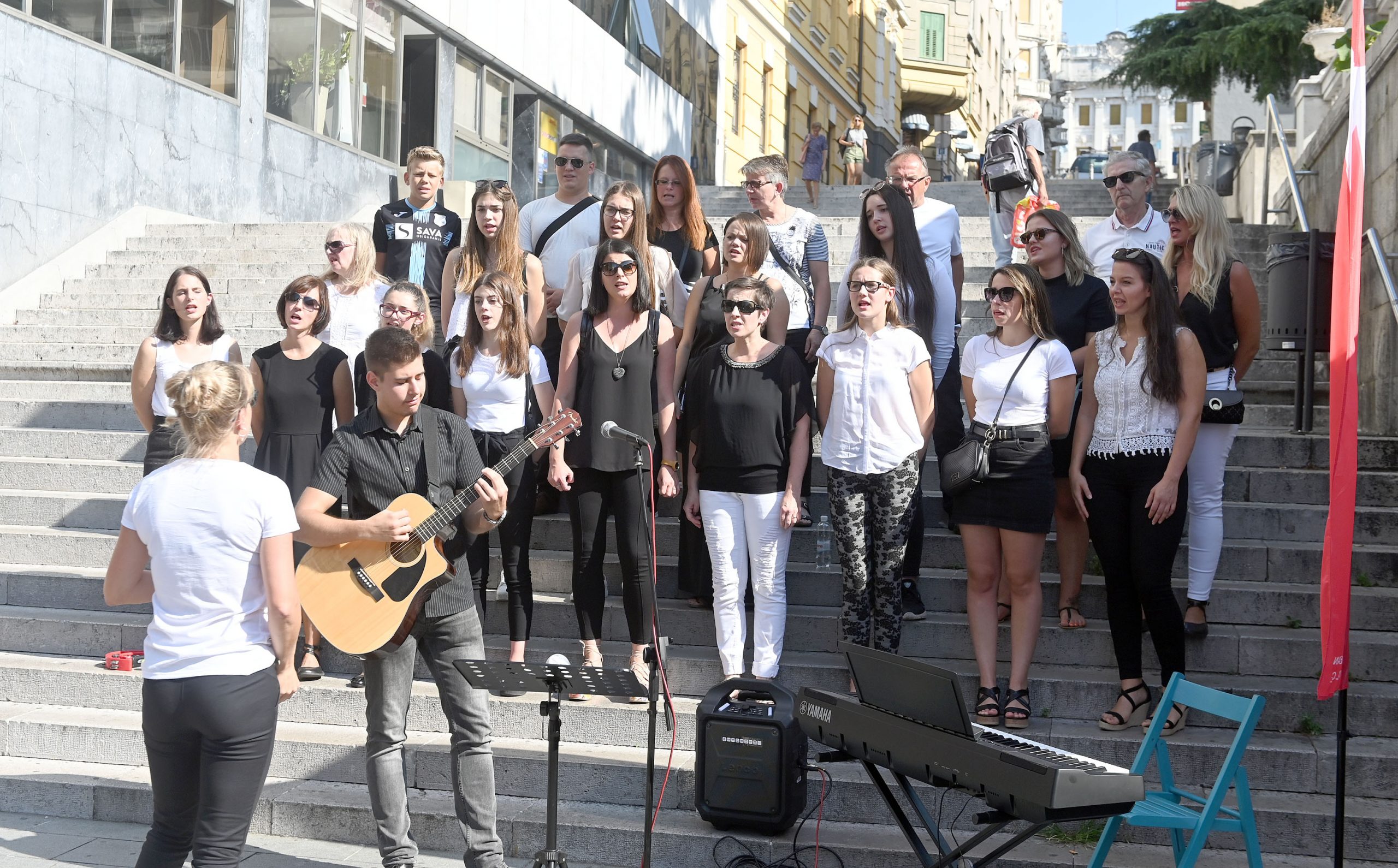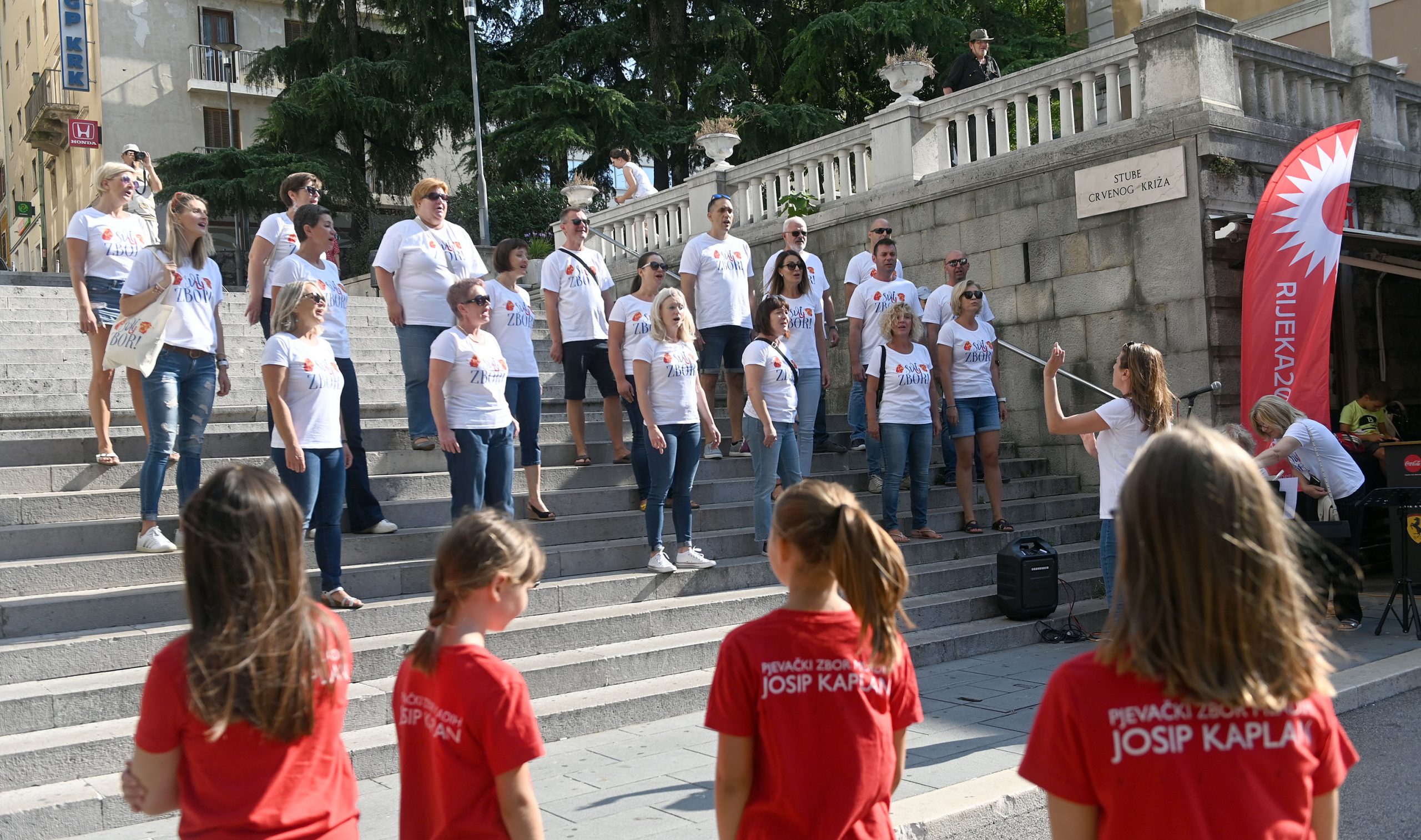U Rijeci danas prijepodne traje zanimljiv program naziva “Svi u zbor” – tijekom dva sata tri zbora istovremeno nastupaju na tri riječka trga, mijenjaći lokacije.