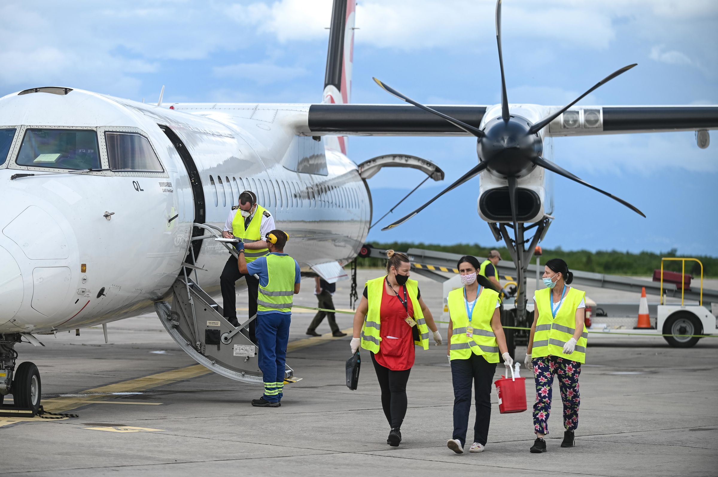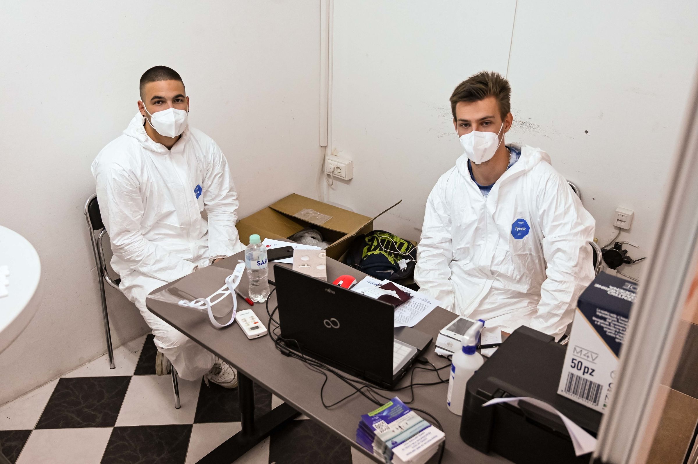 U posebnom boksu na ulazu u zračnu luku sjedi medicinsko osoblje, mladići Dominik i Marko koji testiraju putnike. Kažu da ponekad obave i tridesetak testiranja, no do sada nisu imali niti jedan slučaj da je gost bio pozitivan.