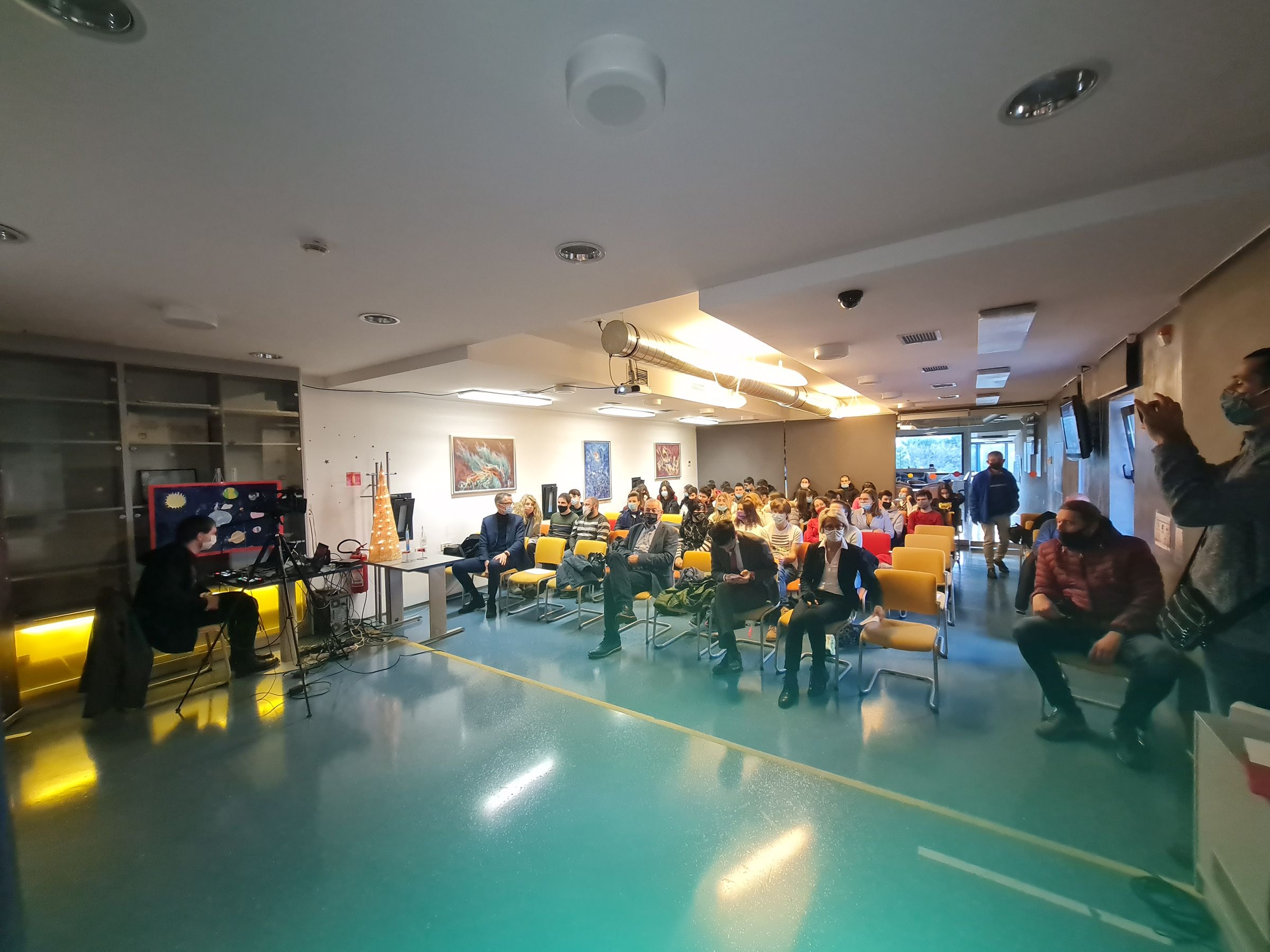 Na riječkom susretu sudjelovali su učenici Talijanske gimnazije Rijeka. Svi ostali zainteresirani gostovanje astronauta Parmitana mogli su pratiti u izravnom prijenosu na Facebook stranici Astronomskog centra Rijeka.