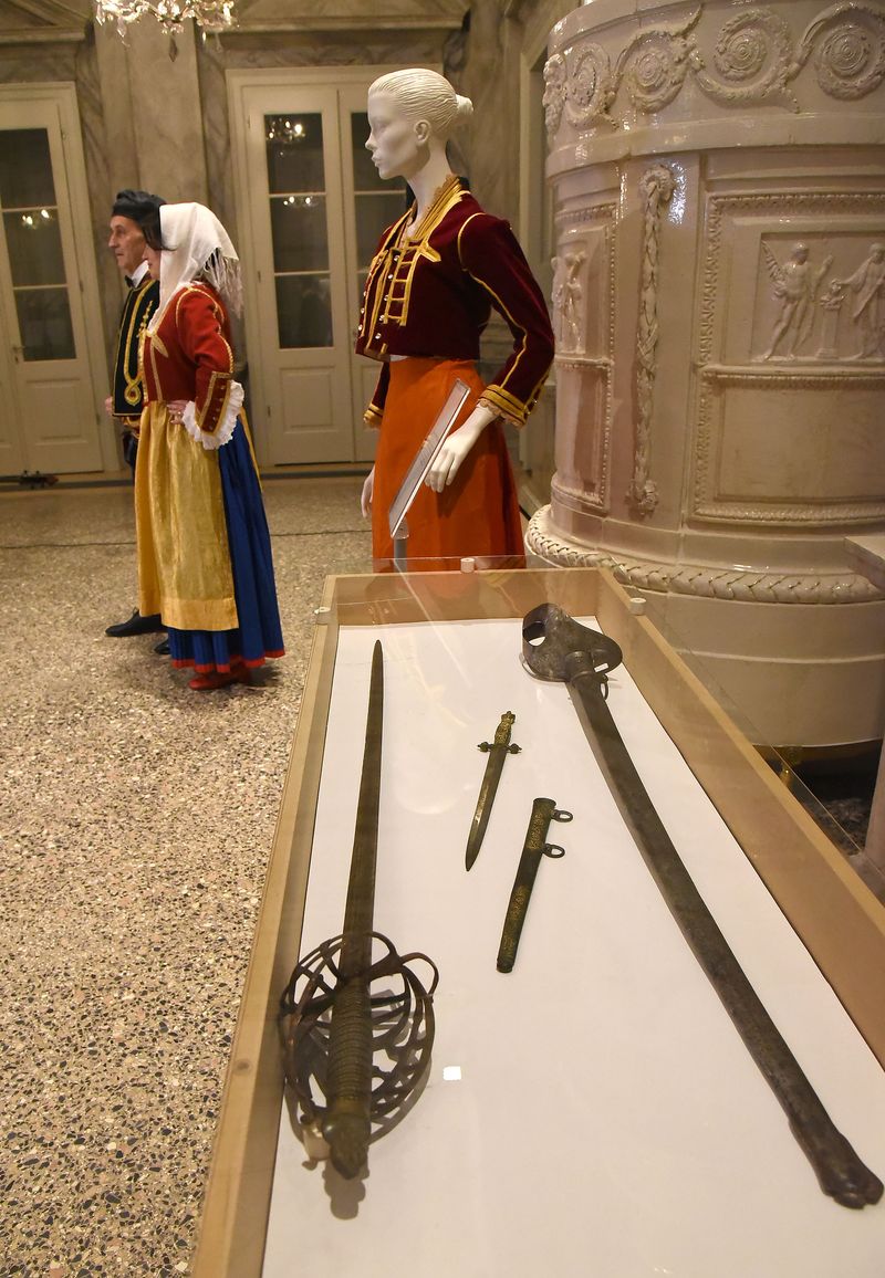 Među izlošcima na izložbi "Odore i oružje bokeljske mornarice" se ističu puške džeferdari i tančice, pištolji ledenice i nabojnjače, kao i bokeljska sablja,