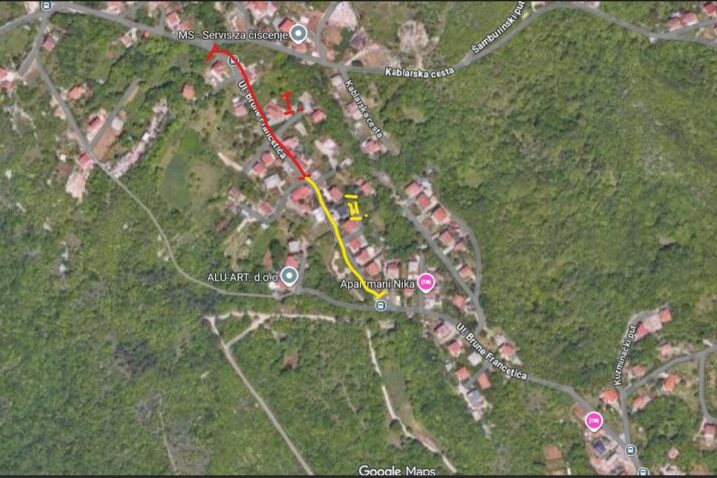 – Radovi Faze I izvodit će se od spoja Kablarske ceste i Ulice Brune Francetića do Ulice Brune Francetića k.br. 35. Navedena dionica bit će zatvorena za promet za vrijeme izvođenja radova. Radovi Faza II će se izvoditi od Ulice Brune Francetića k.br. 35 do k.br. 28.