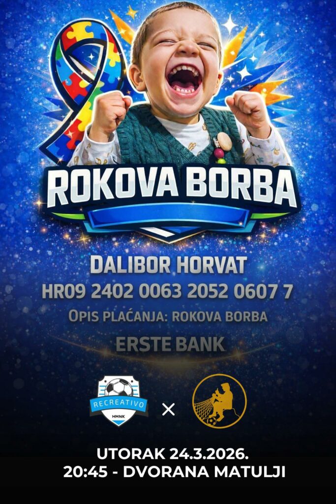 Organizatori pozivaju sve da svojim dolaskom podrže ovu plemenitu inicijativu, a poseban trenutak večeri bit će početni udarac koji će izvesti mali Roko sa svojim djedom Daliborom.