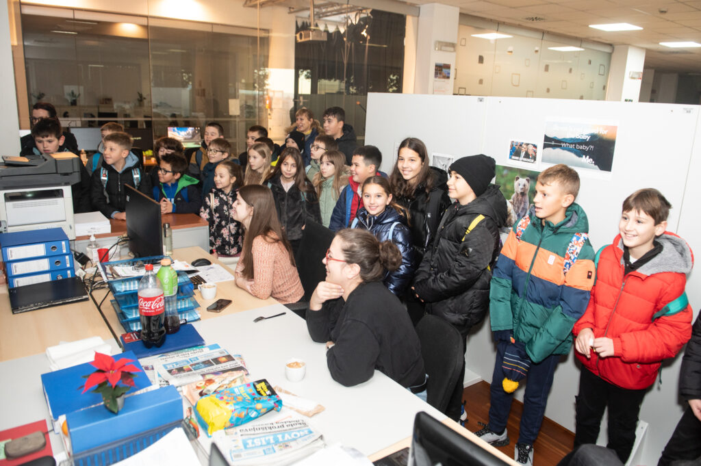 Razveselio ih je i posjet sobi glavne urednice gdje su se jako brzo uživjeli u ulogu osobe koja zajedno s urednicima svakog dana kreira sadržaj i njegov raspored u tiskanom izdanju. Jako im je veliko zanimanje privukao rad grafičkih urednica kao i veličina i značaj novinske tiskare, “rotacije” koji danas rade u samo tri hrvatska grada.