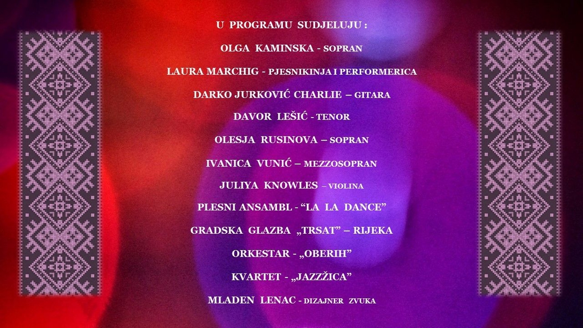 Ovakvu glazbenu sliku pripremili za vas organizatori koncerta, Ukrajinsko kulturno-prosvjetno društvo Dnjipro-Rijeka, uz podršku Grada Rijeke i Savjeta za nacionalne manjine Republike Hrvatske.