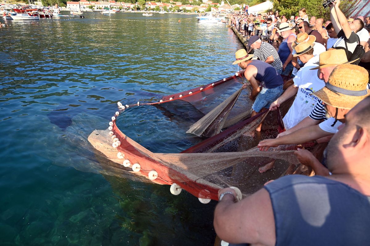 U još uvijek vrućih 19 sati svi pogledi bili su uprti prema moru, gdje je započela simulacija tradicionalnog tunolova.