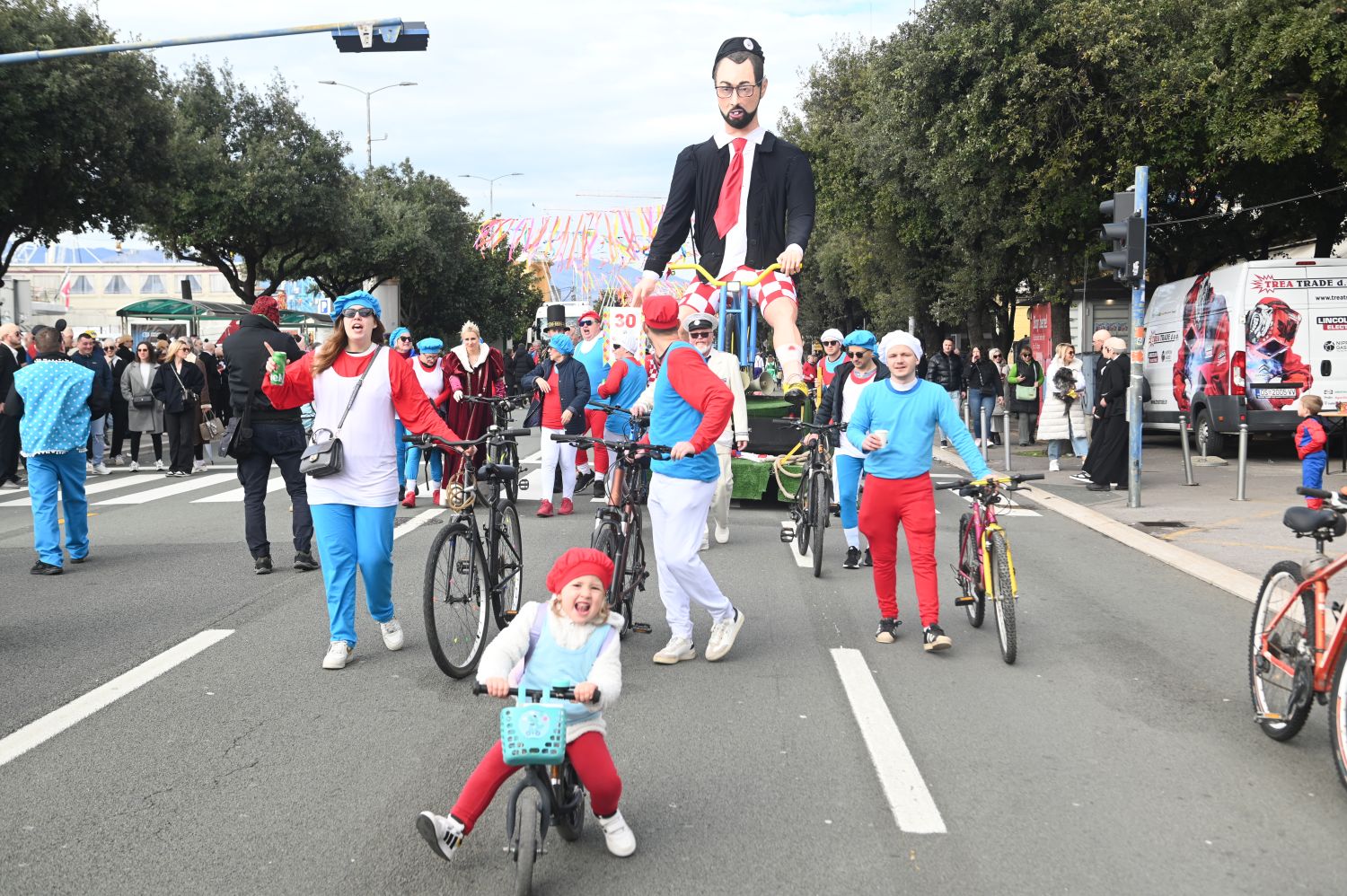 Na čelu povorke su riječka gradonačelnica Iva Rinčić, direktor Turističke zajednice grada (TZG) Rijeke Petar Škarpa, predstanvnici Europske federacije karnevalskih gradova (FECC) na čelu s predsjednikom FECC-a Larsom Algellom, meštar Riječkog karnevala Sandi te njegova kraljica Pia Vujović, nezaobilazni riječki simboli – morčići, kao i Riječke mažoretkinje te Gradska glazba Trsat.