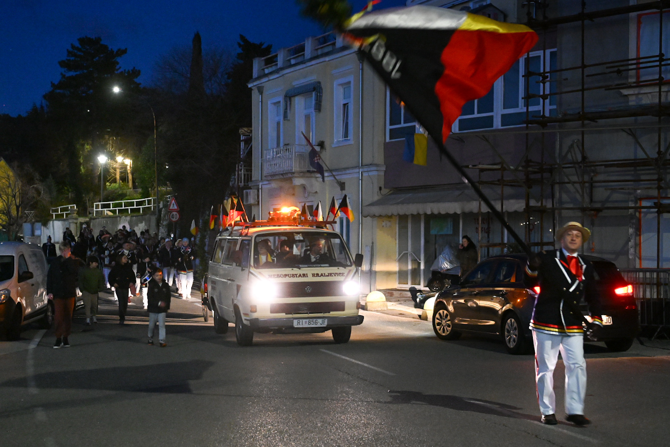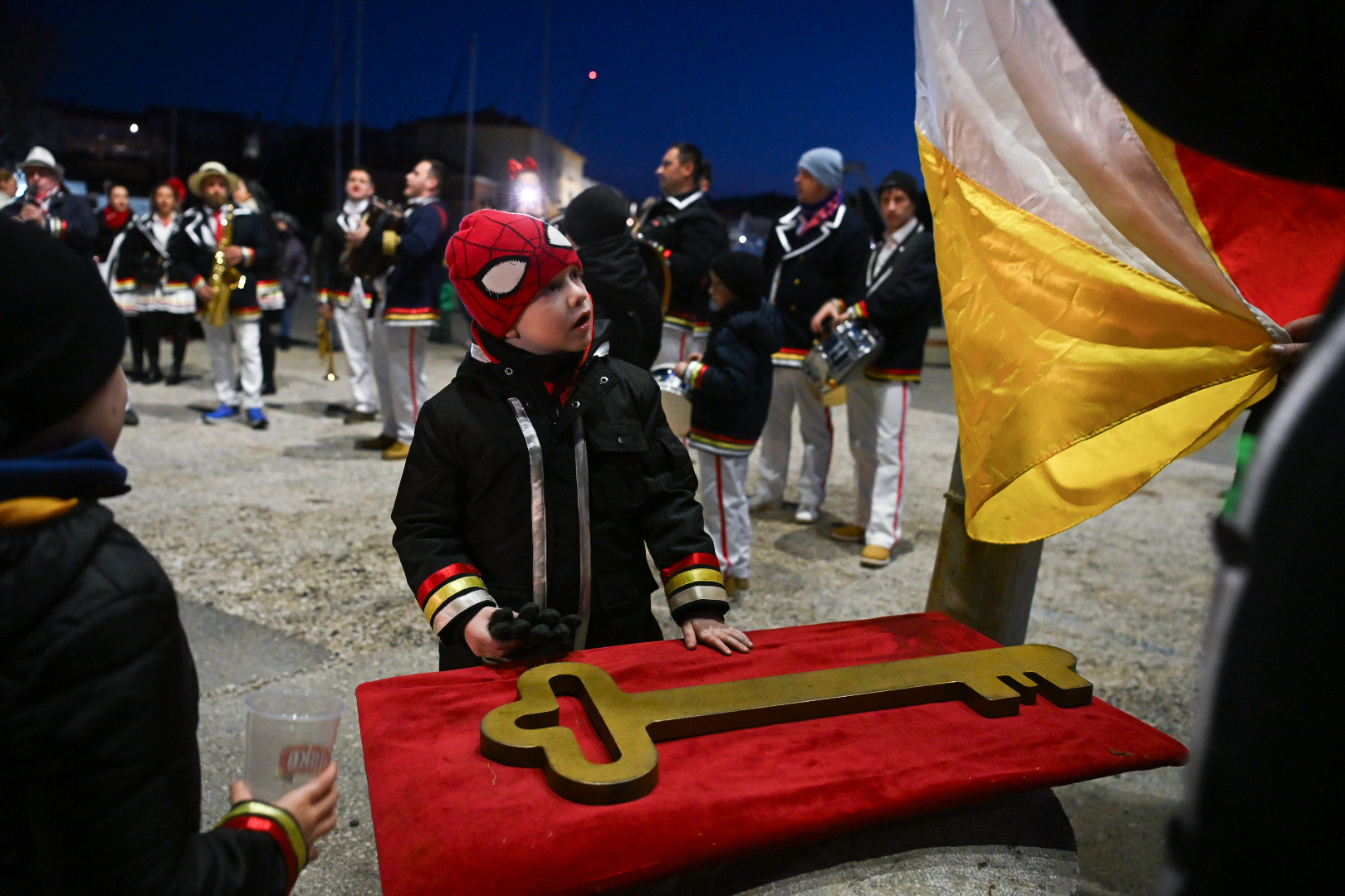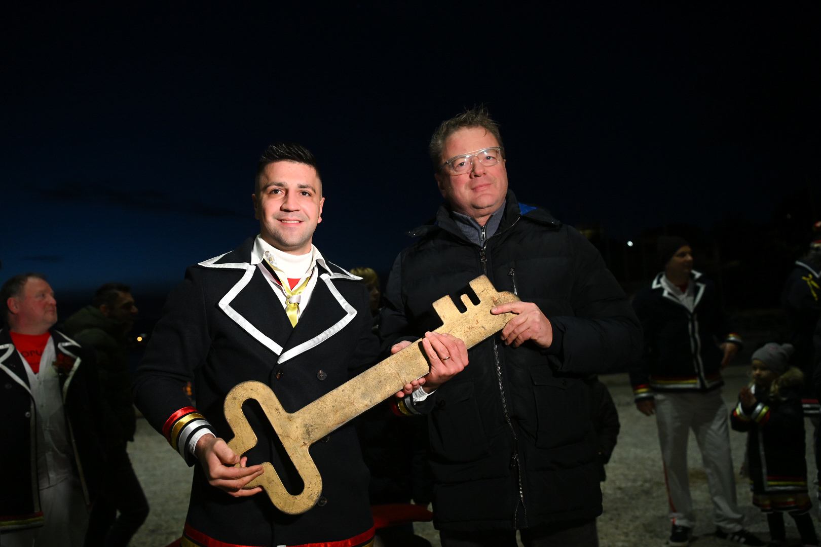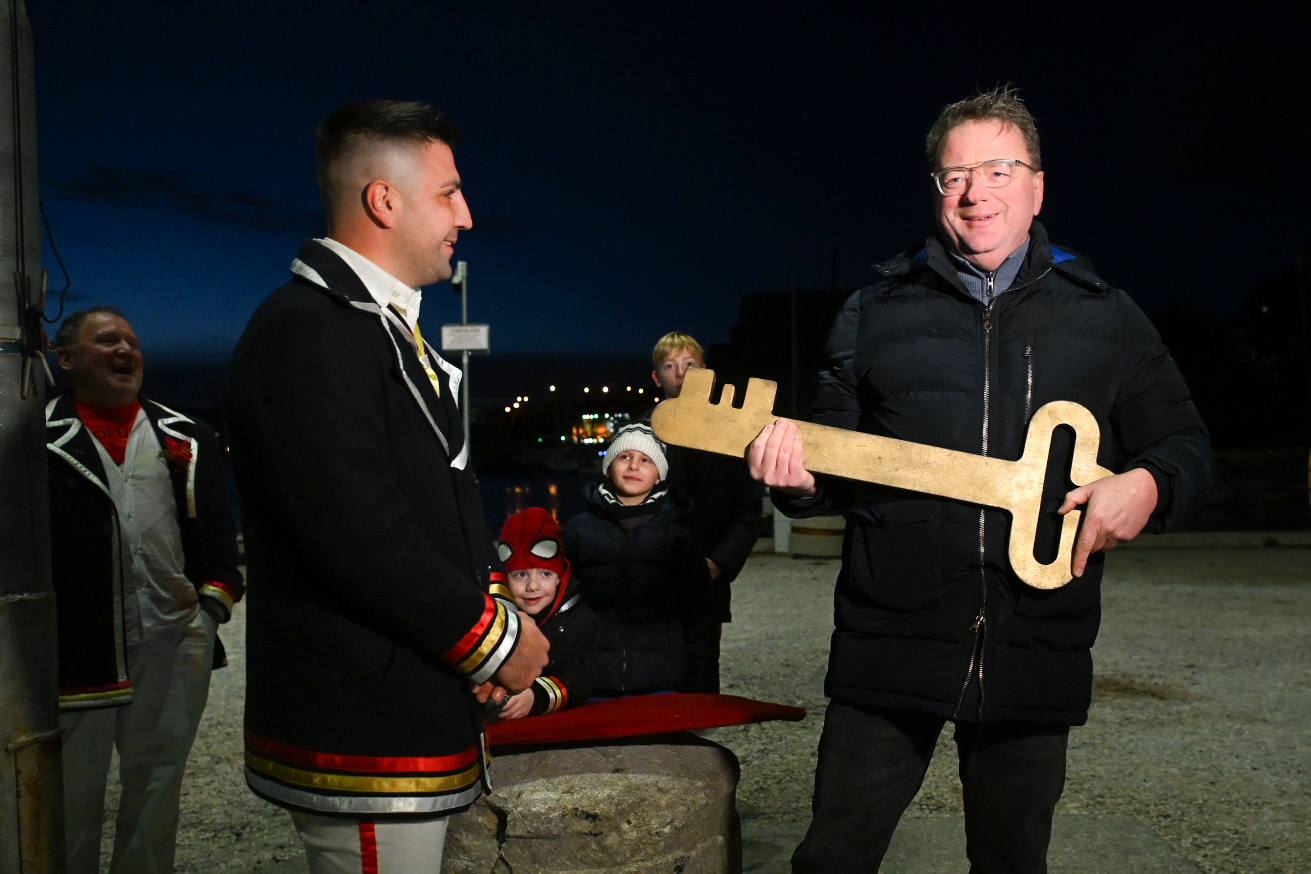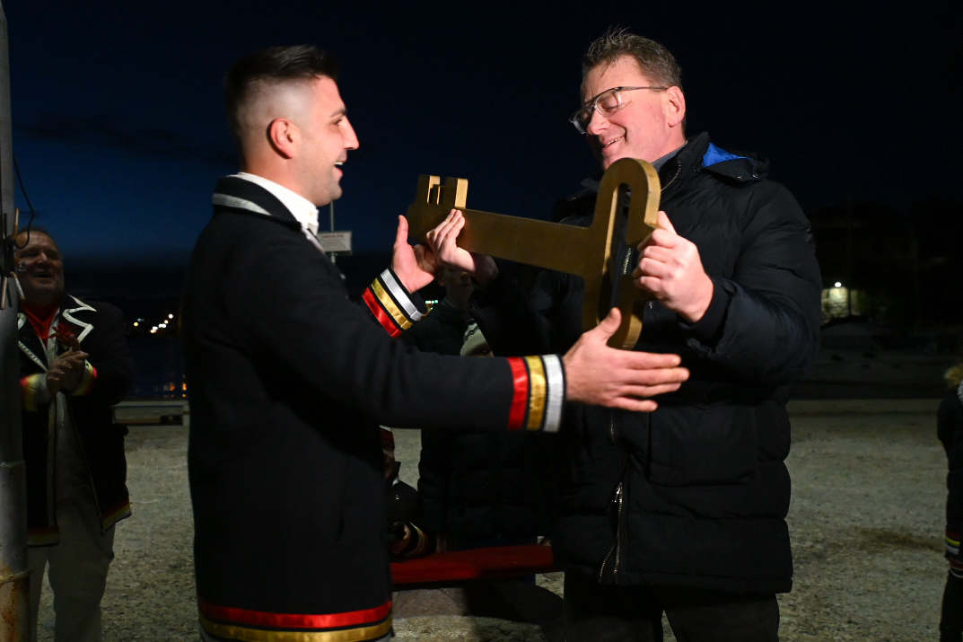 KRALJEVICA Živjela, živjela, Kraljevice bijela – živjele, živjele maškare s Kraljevice… Odjekivala je tako večeras pjesma kraljevičkom rivom, a uz pjesmu, ples, bubanj, muziku, harmoniku, limenu glazbu, smijeh i veselje, vlast su preuzeli Mesopustari Kraljevice i tamošnje maškare! U alegorijskim kolima stigao je i nebogi pust, na kojemu je stajala poruka: „Uzeo jesam, oteo nisam!” Živio pust! Vlast maškara u Kraljevici tradicionalno je započela povorkom mesopustara od Banja do rive, gdje je naposljetku odrađena i simbolična primopredaja ključa grada maškarama. Ključ grada meštru kraljevičkih maškara Ivanu Lovriću predao je gradonačelnik Kraljevice Dalibor Čandrlić. Gradonačelnik je primijetio kako je ključ „svako leto sve teži i teži”, dok su maškare uzvratile: „Nije sve teži i teži, nego si ti sve stariji i stariji!”