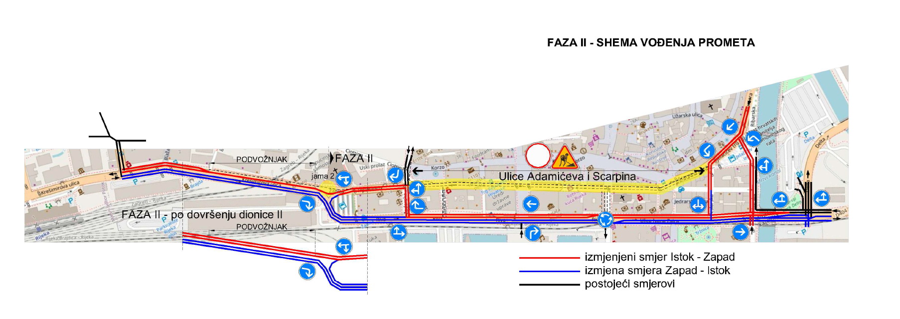 – Promet smjera istok-zapad iz ulice Fiumara odvija se Veslarskom ulicom kojom je omogućen nastavak kretanja vozila u smjeru istoka ulicom Ivana Zajca i zapada ulicom Riva