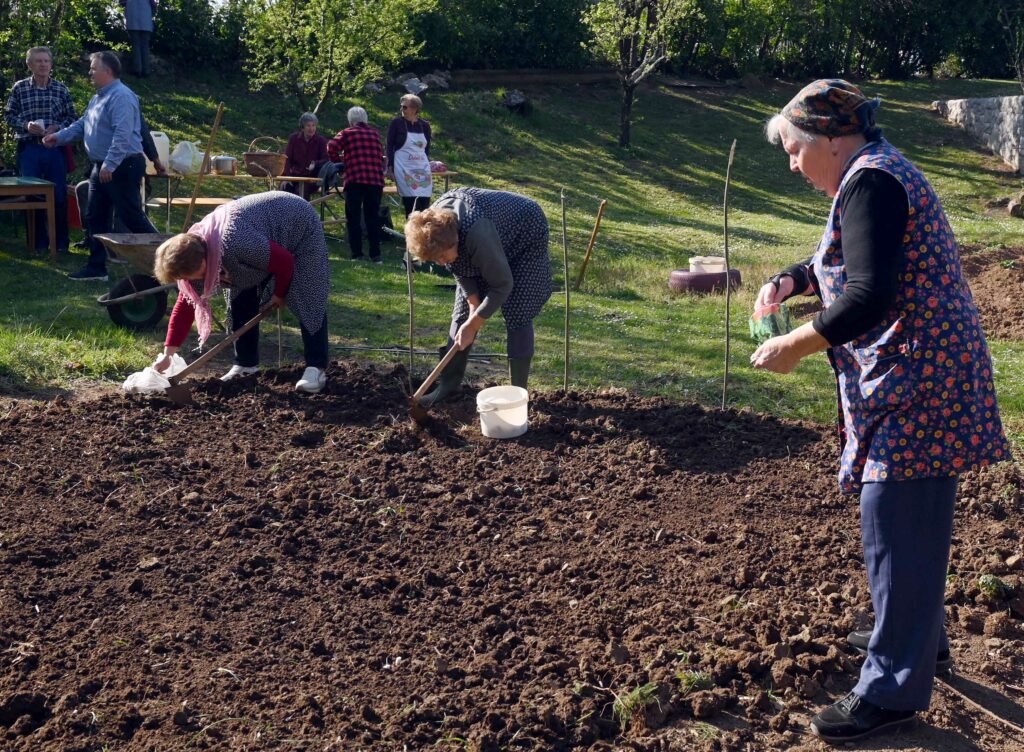 Pravila su jasna i strogo poštuju tradicionalnu podjelu poslova. Muškarci su zaduženi za teži dio – prekopavanje vrta. Ove godine suci nisu pratili dubinu zahvata i preciznost kopanja pa su Goran Petrc (68), Miško Radošević (76), Vaso Ofrizović (76), Željko Ćiković (77), Branko Jugo (77) i Dušan Dimirović (74) mogli se opušteno upustiti u kopanje bez straha od loše izvedbe. Žene su nastupile u drugoj fazi. Vedrana Saršon (79), Đurđica Frlan (81), Mira Ćuća (69), Neda Višnjovski (80), Branka Jugo (77) i Liljana Host (68), iskusno su iskoristile prekopanu zemlju. Njihova spretnost očitovala se u sadnji salate, krumpira i fažola, u savršenoj ravnini redova i pravilanom razmaku između sadnica. – Ove godine je naš mali jubilej, važno je da se ovo održalo sve ove godine, da se malo okupimo, podružimo. Kad smo krenuli, imali smo veliku podršku tadašnjeg našeg načelnika općine Viškovo, Gorana Petrca, koji nam se i ove godine priključio, kaže nam Rajko Srok. Podrška općine Viškovo traje i dalje, a to je potvrdilo i prisustvo zamjenika načelnice Općine Viškovo, Denisa Mladenića, koji ove godine nije kopao, ali je pomogao Nadi Srok (75) i Anki Jardas (81) noseći tradicionalnu veliku košaru s hranom. – S ovim događanjem već tradicionalno počinju Dani Općine Viškovo, kaže nam Mladenić.