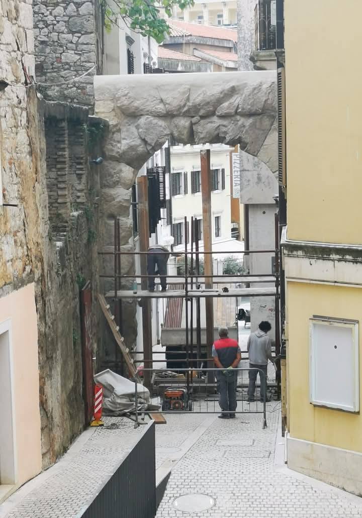 “Stara vrata, poznata i kao Rimski luk, najstariji sačuvani arhitektonski spomenik Rijeke, nakon pet godina navodne obnove završio je – premazan cementom. Takva intervencija ne može se nazvati ni zaštitom ni konzervacijom. Ona predstavlja ozbiljnu devastaciju”, poručili su iz Liste za Rijeku.