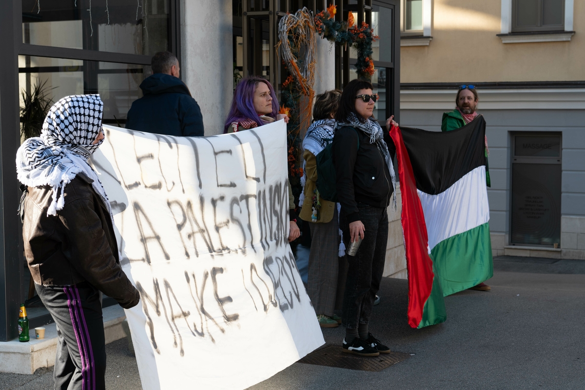 Prema riječima prosvjednika, njih troje je privela policija i izdala im prekršajni nalog zbog palestinske zastave