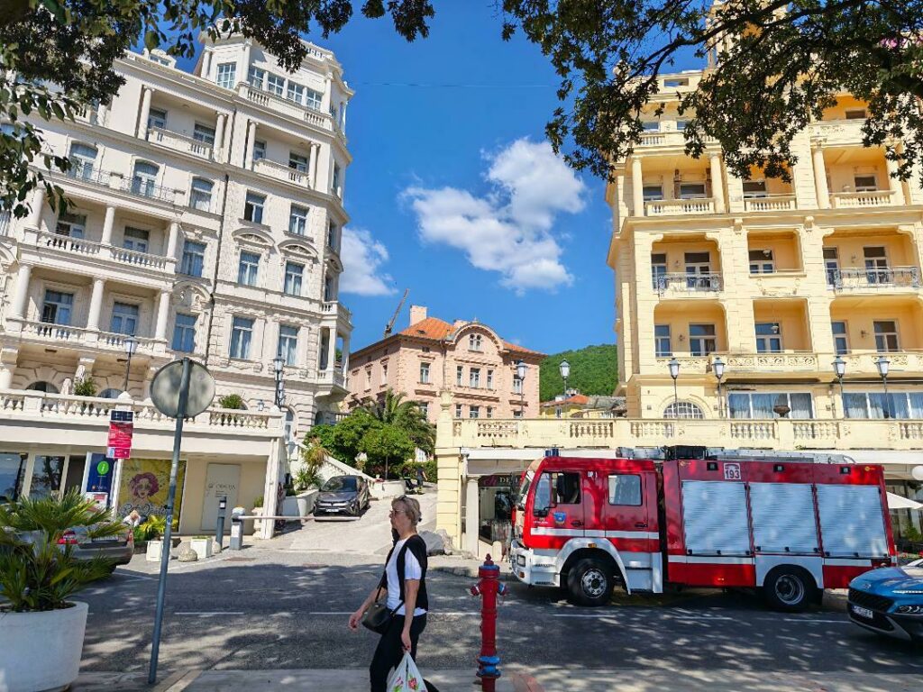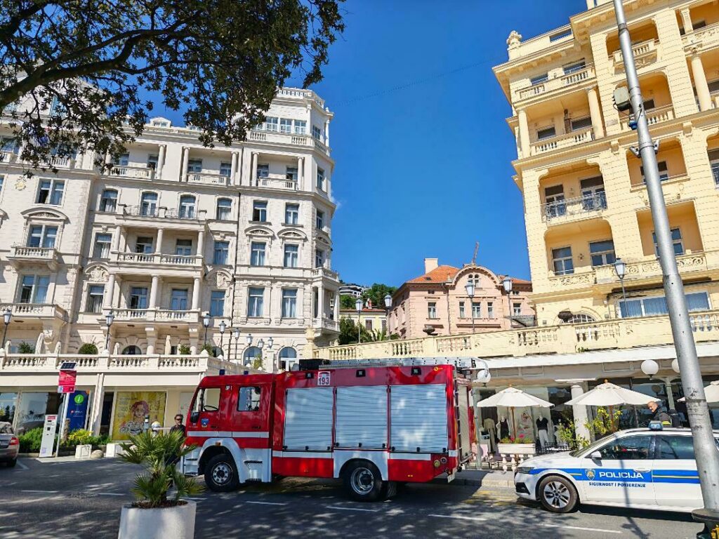 OPATIJA – Vatrogasci i policija su ispred hotela Palace-Bellevue na Slatini, je li došlo do požara u nekoj od ove dvije hotelske zgrade u srcu turističke Opatije? Tijekom većeg dijela današnjeg jutra, vatrogasno i policijsko vozilo i dežurne interventne ekipe bile su ispred kavane hotela Palace, što je izazvalo zanimanje brojnih šetača i gostiju. Prema službenom izvoru unutar Liburnia Hotels&Villas, nema mjesta za paniku, jer vatrogasci nisu intervenirali uslijed pojave vatre, a incident koji se dogodio nije omeo rad hotela.