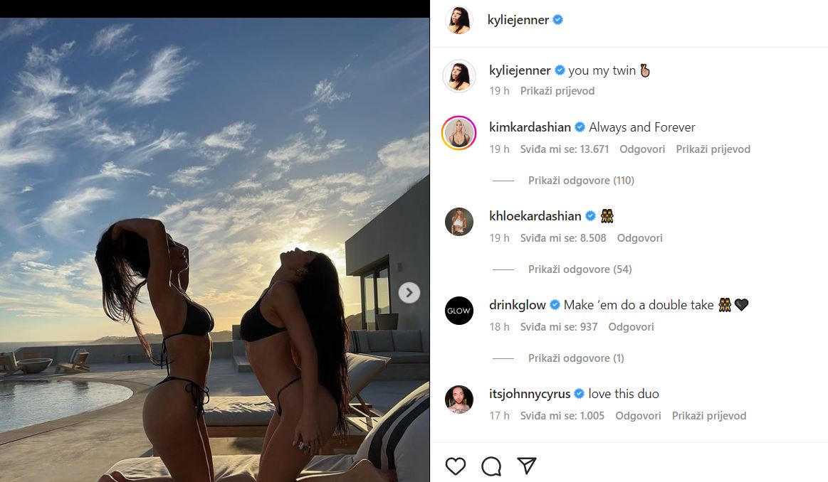 Ovoga su puta glavne zvijezde fotki bile Kim i Kylie koje su pozirale zajedno na ležaljci kraj bazena. Ono što upada u oči su njihovi izazovni bikiniji i nevjerojatna fizička sličnost.