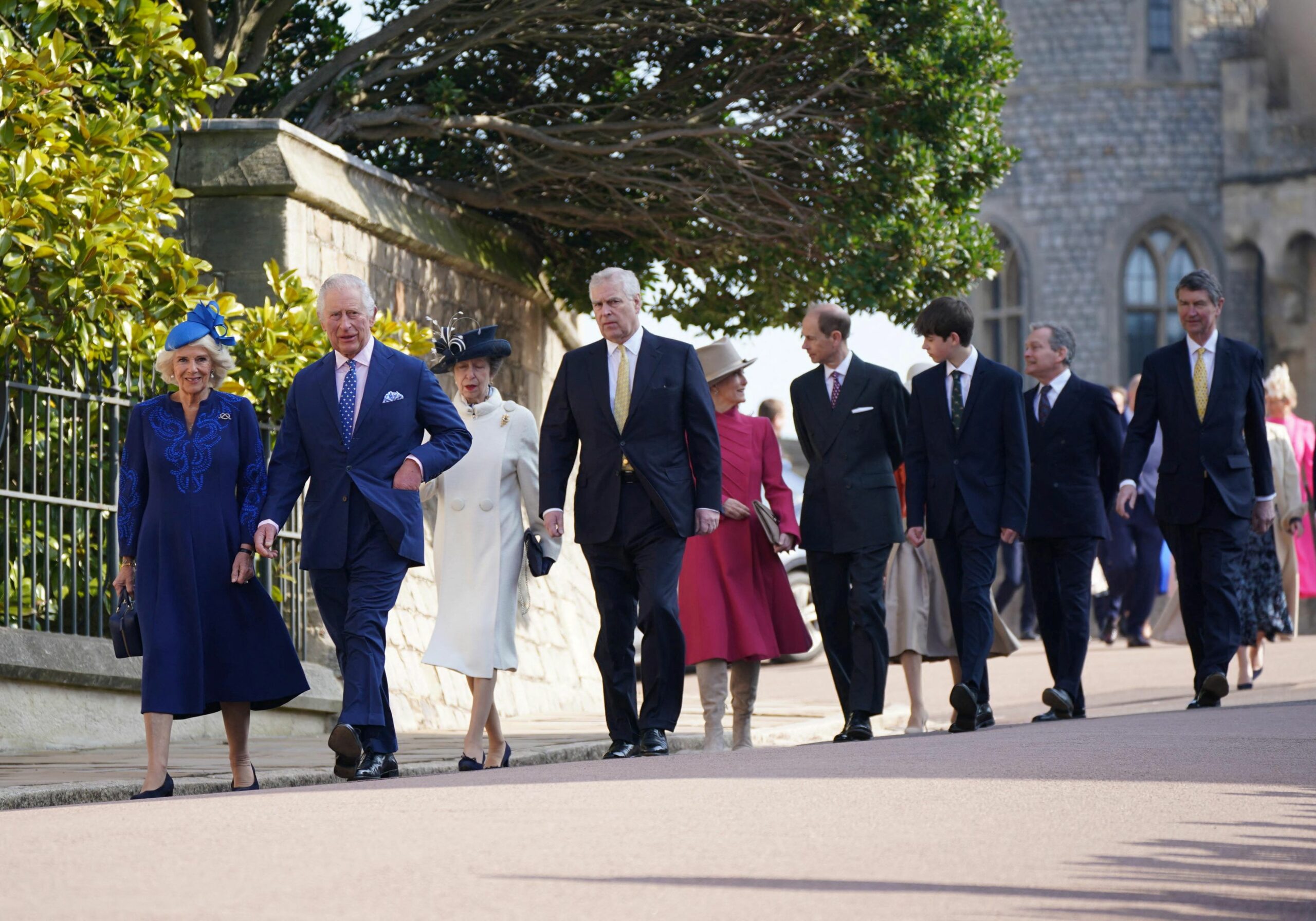Karlu se pridružila supruga kraljica Camilla i njegova šira obitelj, uključujući sina i nasljednika princa Williama, njegovu suprugu Kate i njihovo troje djece, u šetnji od dvorca do obližnje kapelice Svetog Jurja.