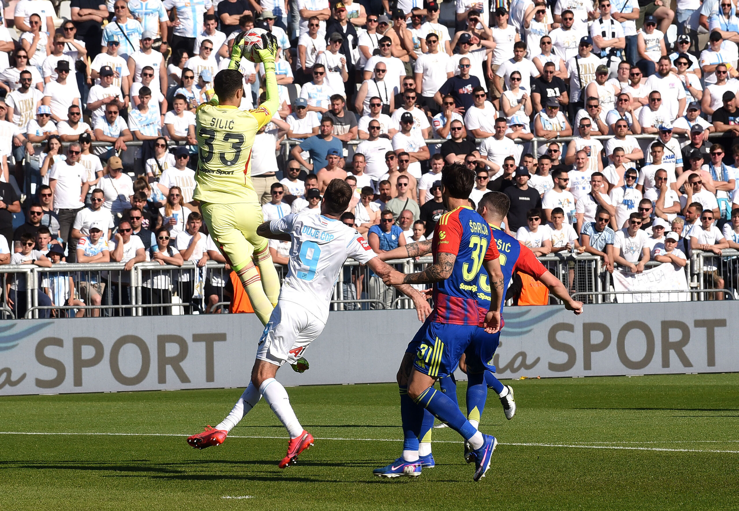 42. minuta Velika šansa Rijeke. Dantas je prvo pucao s ruba kaznenog prostora, Silić je to sjajno obranio, lopta se vratila ponovo do peterca, gdje je Šarlija pogodio gredu vlastitog gola!