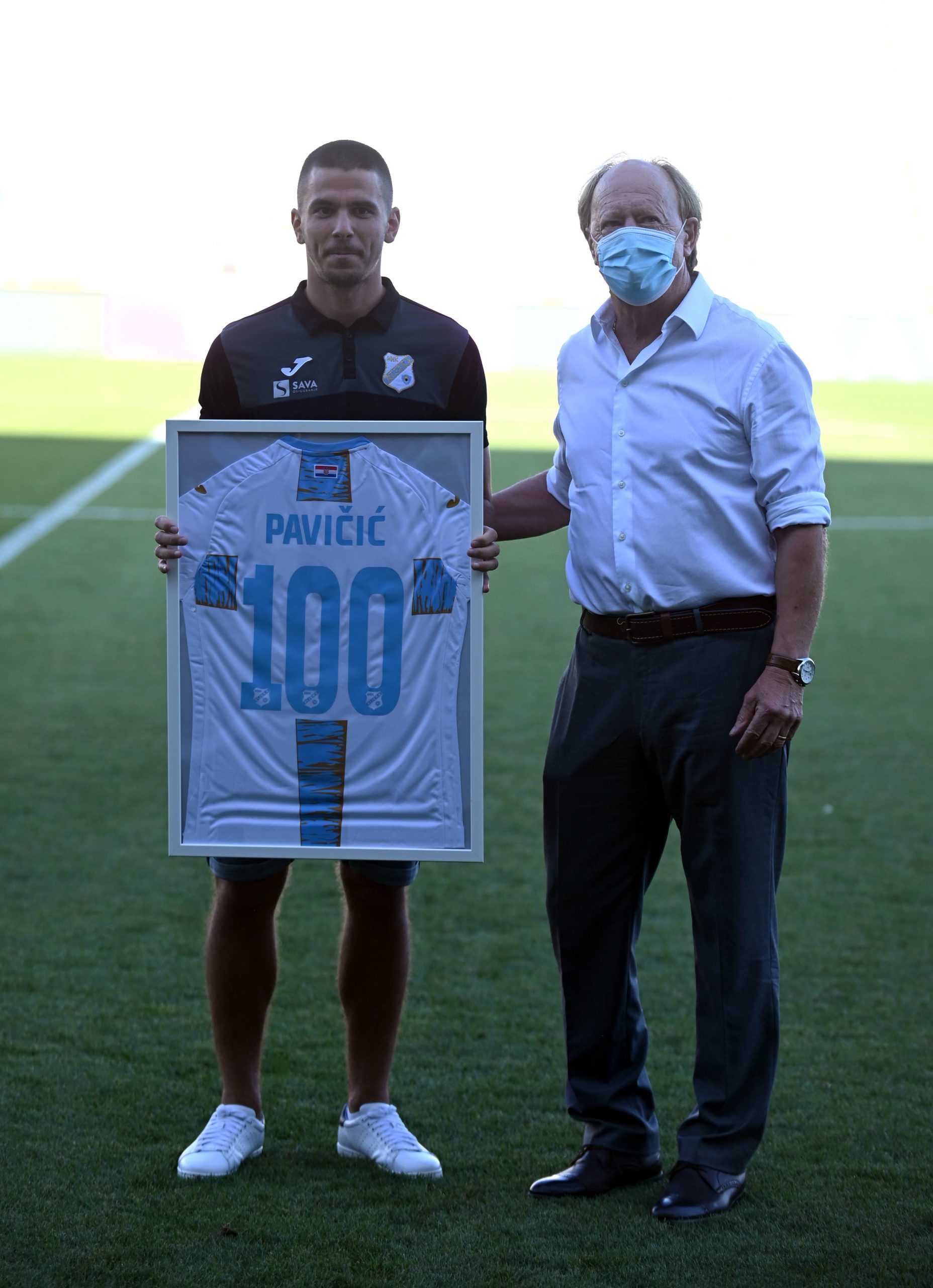1.minuta Počela je prva ovosezonska utakmica Rijeke na Rujevici. Prije susreta Čolaku je uručena nagrada za najboljeg strijelca Prve HNL prošle sezone, dok je Pavičiću uručen dres povodom stote utakmice odigrane za Rijeku.