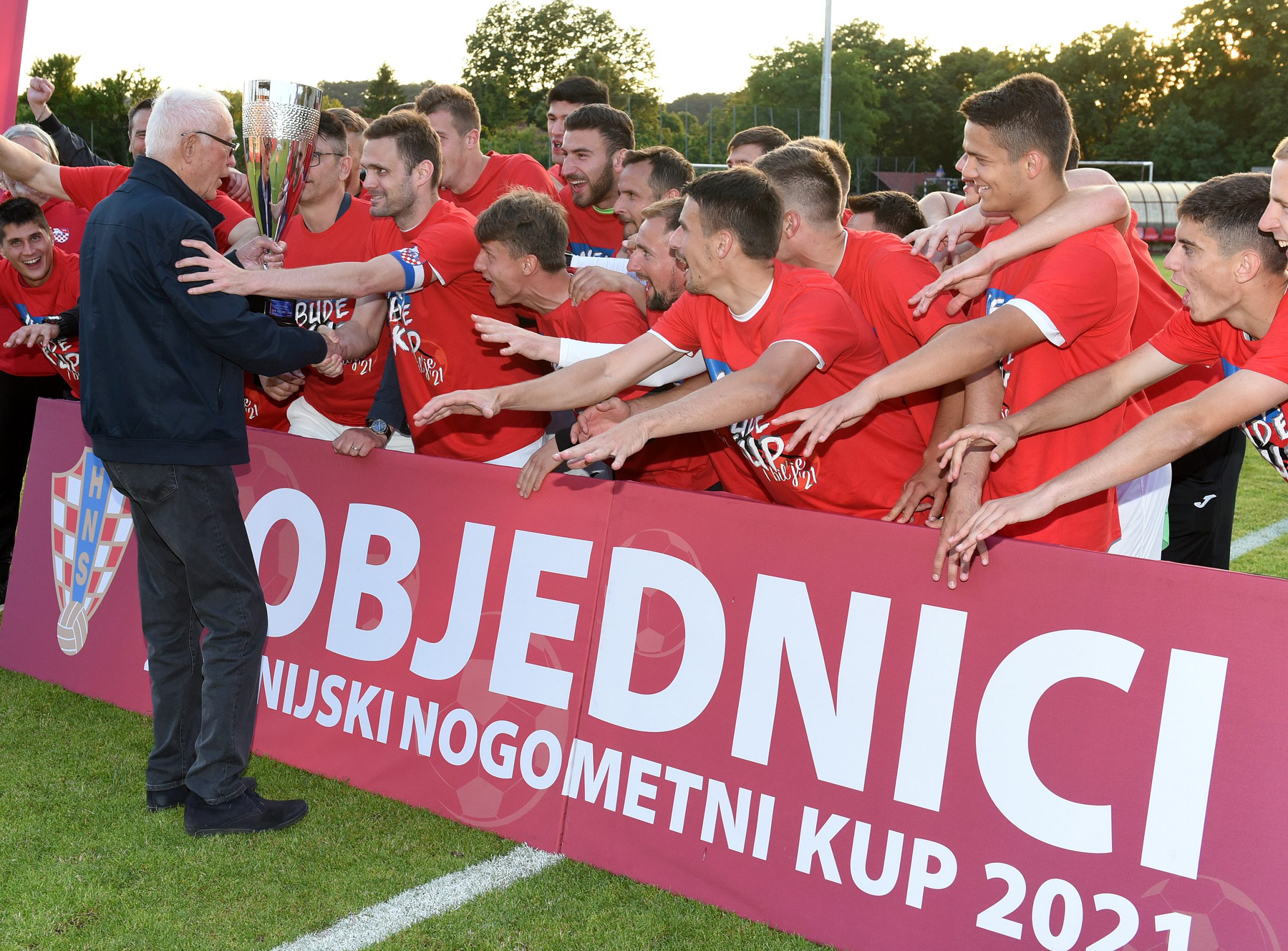 ERUPCIJA RADOSTI - Nogometaši Orijenta 1919 s pobjedničkim peharom/Foto M. GRACIN