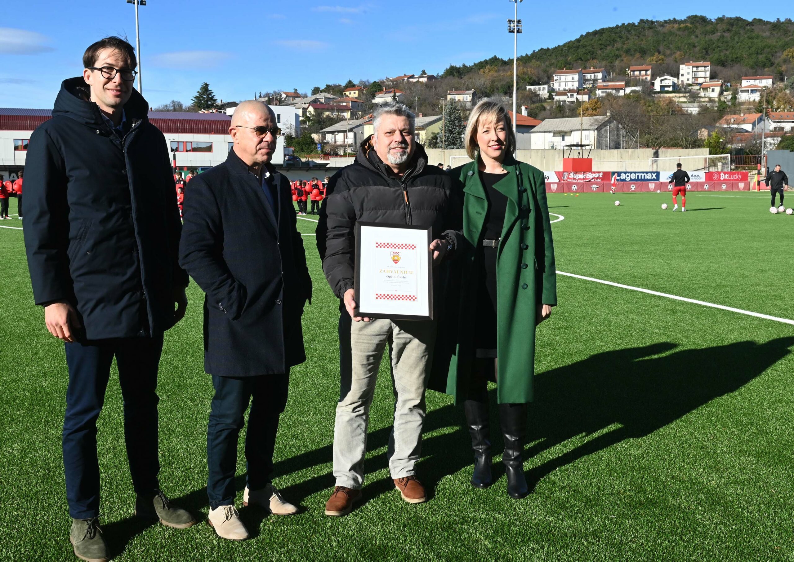 Utakmica je počela kratkim programom svečanog otvaranja igrališta u kojem su pored predstavnika lokalne samouprave, klupske Uprave sudjelovali i Mići dondolaši. Klupskoj legendi Dorisu Miculiniću pripala je čast izvesti počasni udarac. Golgeteru Draženu Pilčiću, koji već sada ima osiguran status klupske legende, prije 15 dana pripala je čast zabiti prvi službeni pogodak na novom travnjaku, a blizu drugog pogotka bio je u 18. i 21. minuti. U obje situacije dobro je reagirao vratar Mihael Bodetić, inače brat Noela, prvotimca Rijeke.