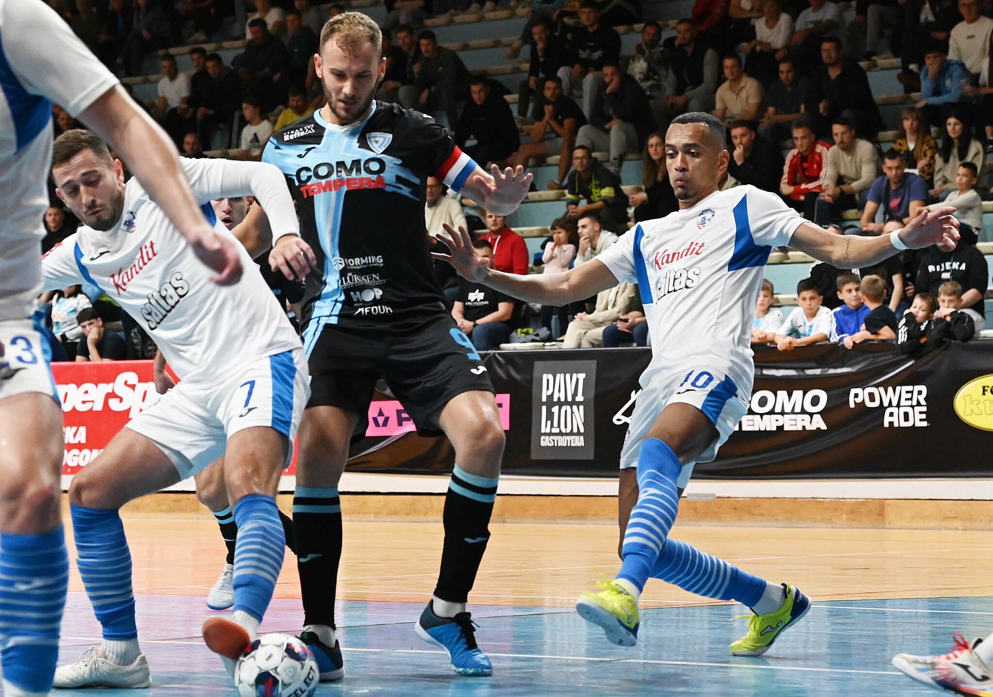 Futsal momčad Rijeke predvođena sjajnim vratarom Victorom Saafom uspješno se iskupila za šibenski posrtaj u prvom kolu svladavši na Trsatu aktualne viceprvake države. Šveđanin na riječkim vratima nije mogao zamisliti bolje predstavljanje domaćoj publici, a svoj nemali pečat pobjedi dala su i dva riječka dečka – Mihael Matijević i Filip Kamauli. Potvrdili su da na njih treba ozbiljno računati u nastavku sezone. Prvo poluvrijeme moglo je zadovoljiti i ona najprobranija malonogometna nepca. Gledatelji su mogli uživati u visokooktanskom futsalu. Nastavak je više donio pozicijsku igru, manje atraktivan futsal, ali nije nedostajalo uzbuđenja. Upravo suprotno! Publika je na zadnje trenutke utakmice dočekala na nogama, a onda proslavila pjesmom s igračima teškom mukom izborenu pobjedu.