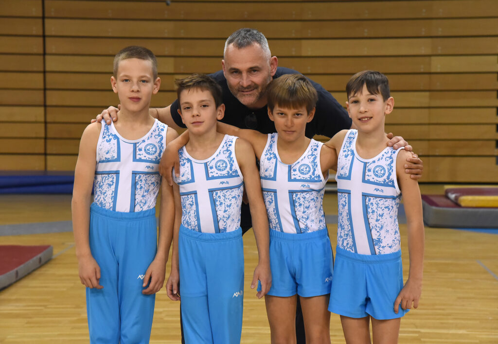 Karlo Ninić, Arian Modrić i Vid Kovačević s trenerom Davidom Barićem