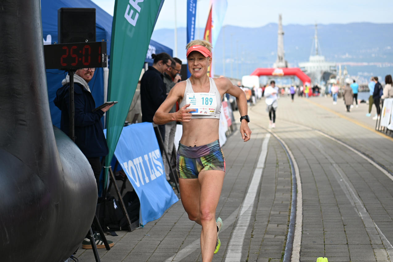 Tri minute i 48 sekundi nakon Sternija, ciljem je kao prva žena, odnosno djevojka, “proletjela” Žana Turk. Vjerojatno i najugodnije iznenađenje ovogodišnjeg riječkog Festivala jer ne samo da je bila bolja od mnogih starijih sudionika, već se članica Atletskog kluba Kvarner tek godinu dana bavi trčanjem.