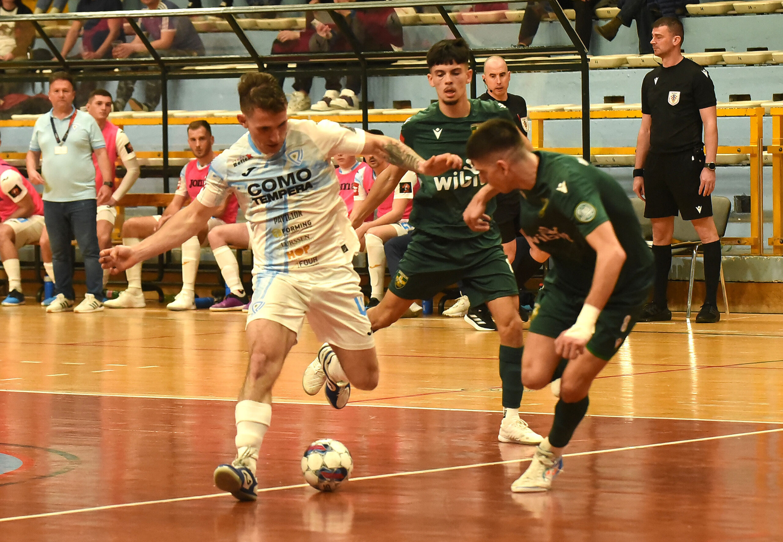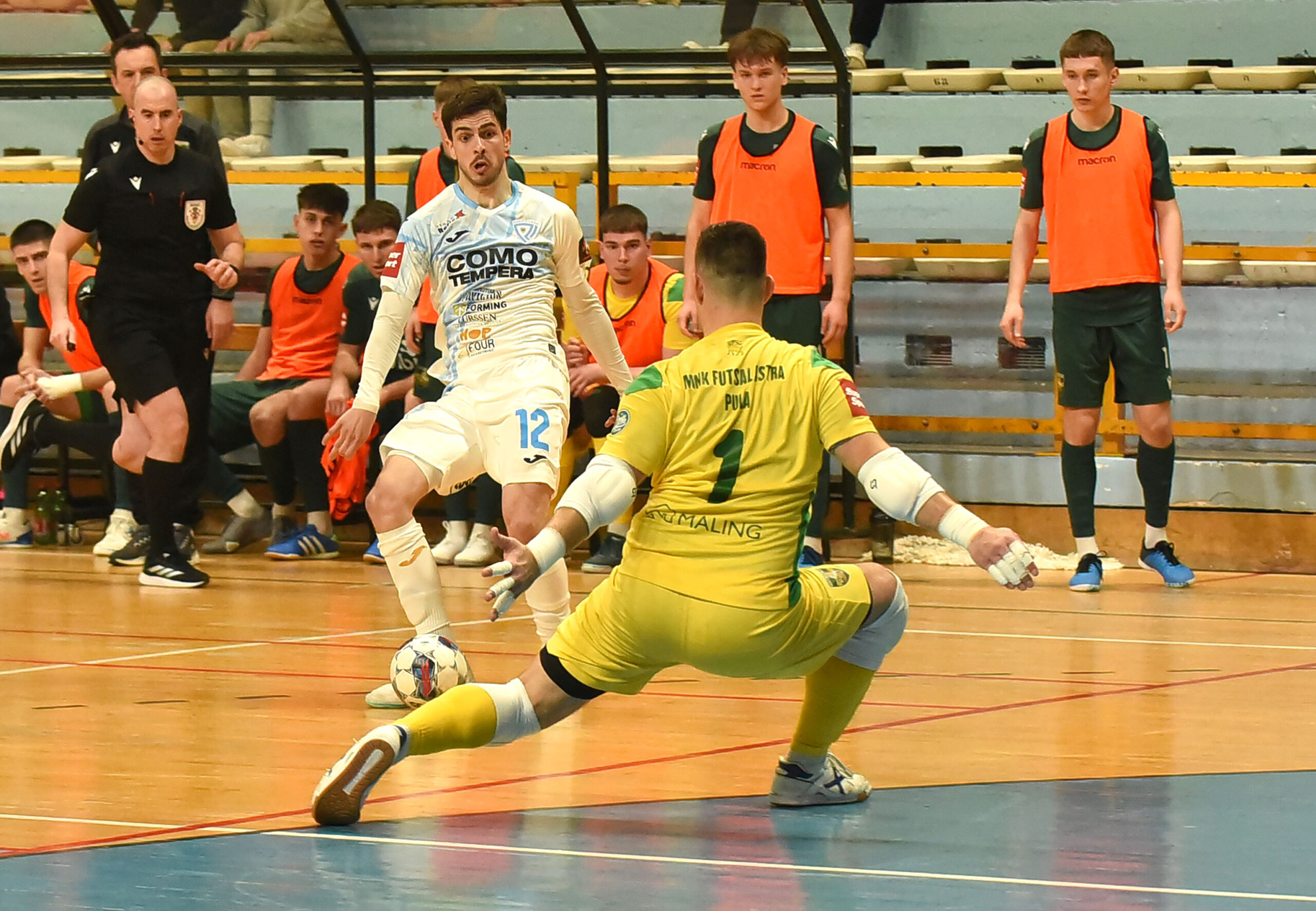 Puljanima je išla u prilog i činjenica da su Riječani u 33. minuti napravili peti akomulirani prekršaj, a onda je u 34. minuti Đorđe Rosić pokazao koliko futsal može biti jednostavan i atraktivan sport. Prevario je svojega čuvara na desetak metara od vratiju pa desnicom poslao loptu u lijevu gornju devedesetku nemoćnog Luketina – 4:2.